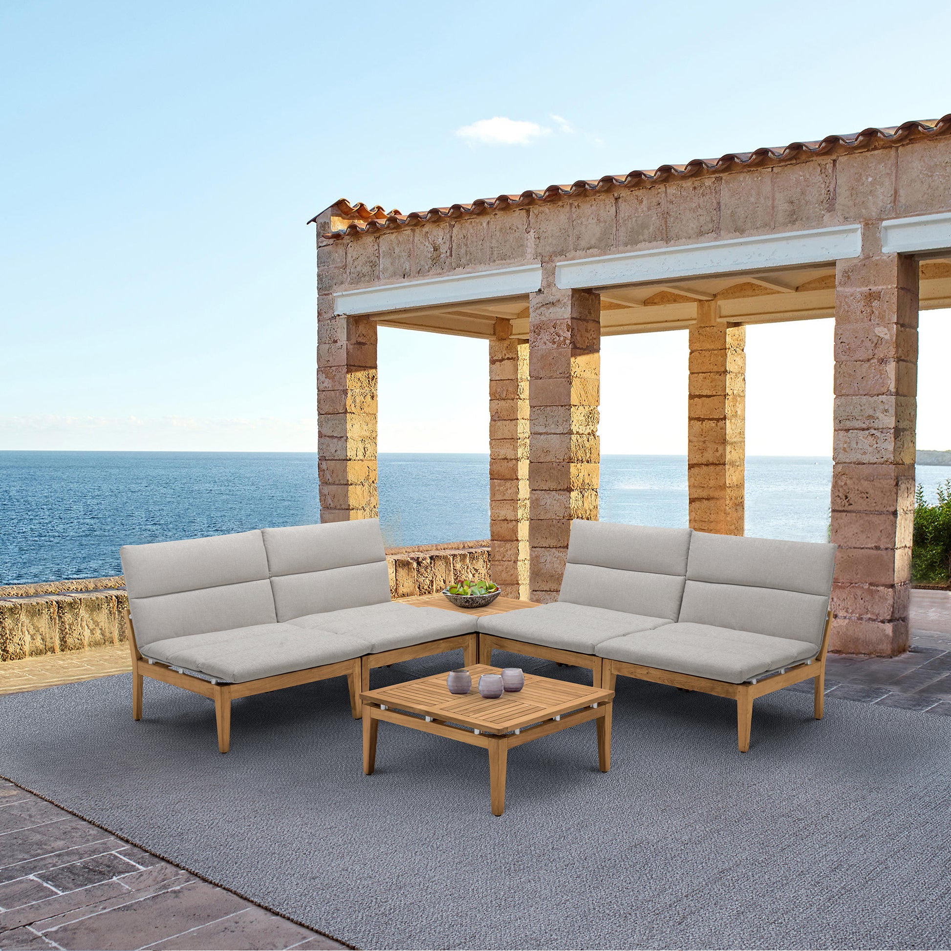 Arno Outdoor 6 Piece Teak Wood Seating Set in Beige Olefin