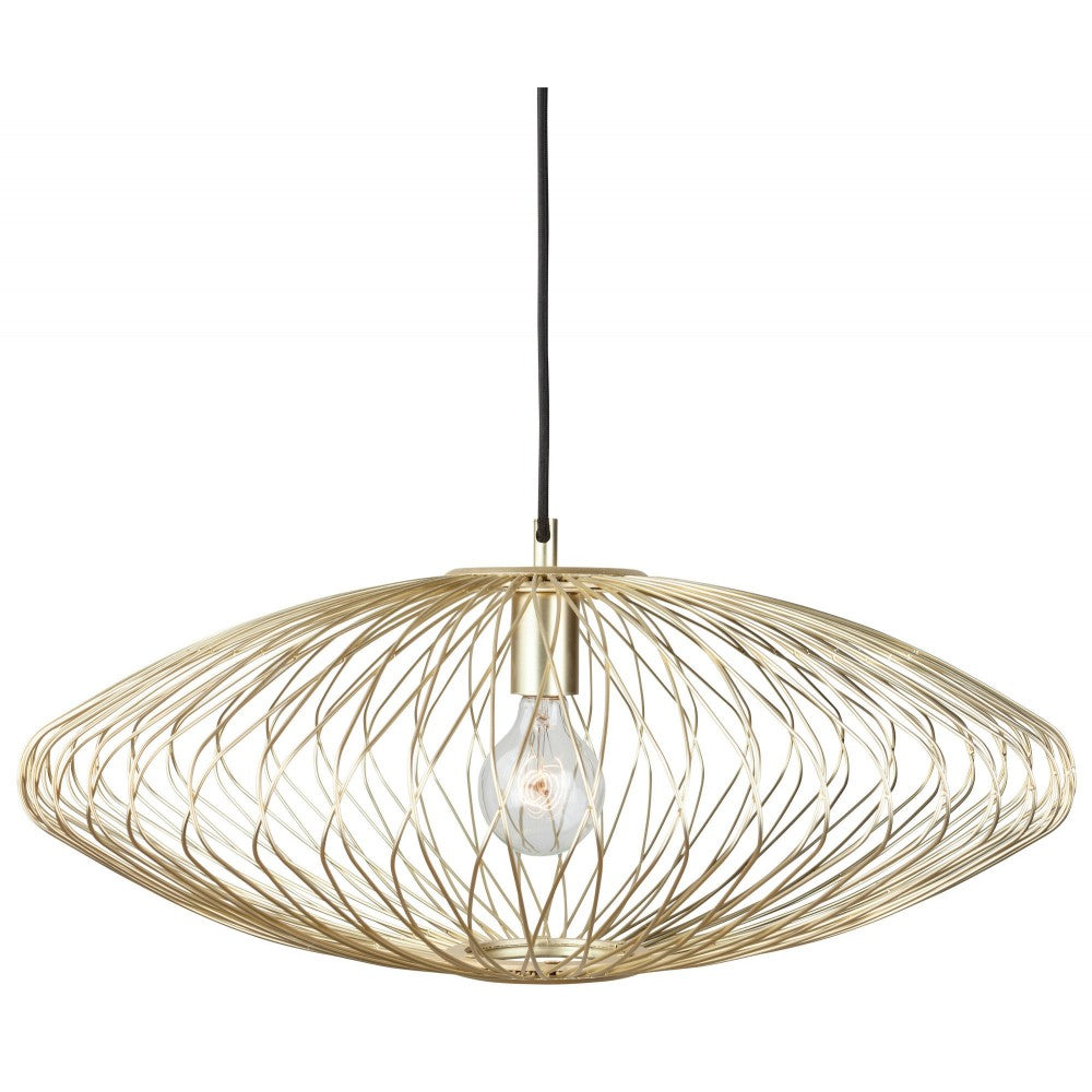 The new age social optimism of the post war era is the inspiration behind the Astra pendant. Suspended on a stainless steel rod with a clear power cord the Astra's innovative elongated design projects a sophisticated mid-century aesthetic. The vacuum-plated matte gold stainless steel shade is notable for its artfully interwoven wire frame presenting an enchanting textured lightness and warmth.