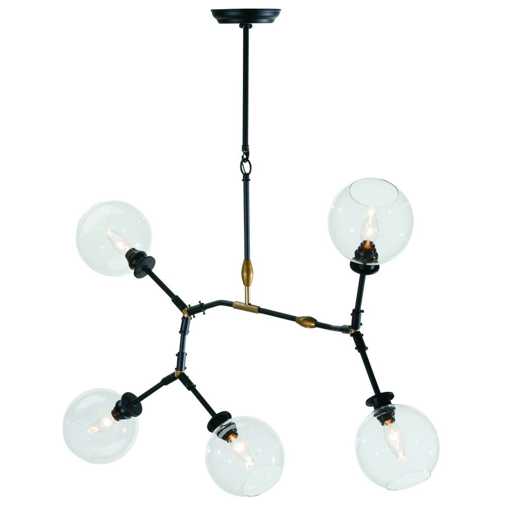 The Atom 5 pendant projects a smart contemporary dynamic. Featuring 5 glass orbs on articulated multi-directional arms, the Atom 3 is a unique urban pendant expressing a sophisticated modern energy. Suspended on a powder coated steel canopy, the Atom 5 is adjustable to a maximum overall height of 25 inches.