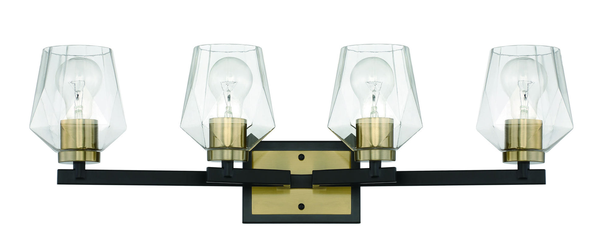 - Backplate Width (in): 6.5; Backplate Depth (in): 0.79; Leadwire Length (in): 6; Bulb(s) Included: FALSE; Number of Bulbs: 4; Bulb Base: E26; Bulb Size (Recommended): A19; Max Wattage: 60; Mounting Method: Wall Mount; Mounting Location: Damp; Glass/Shade Finish: Clear; Shade Material: Glass