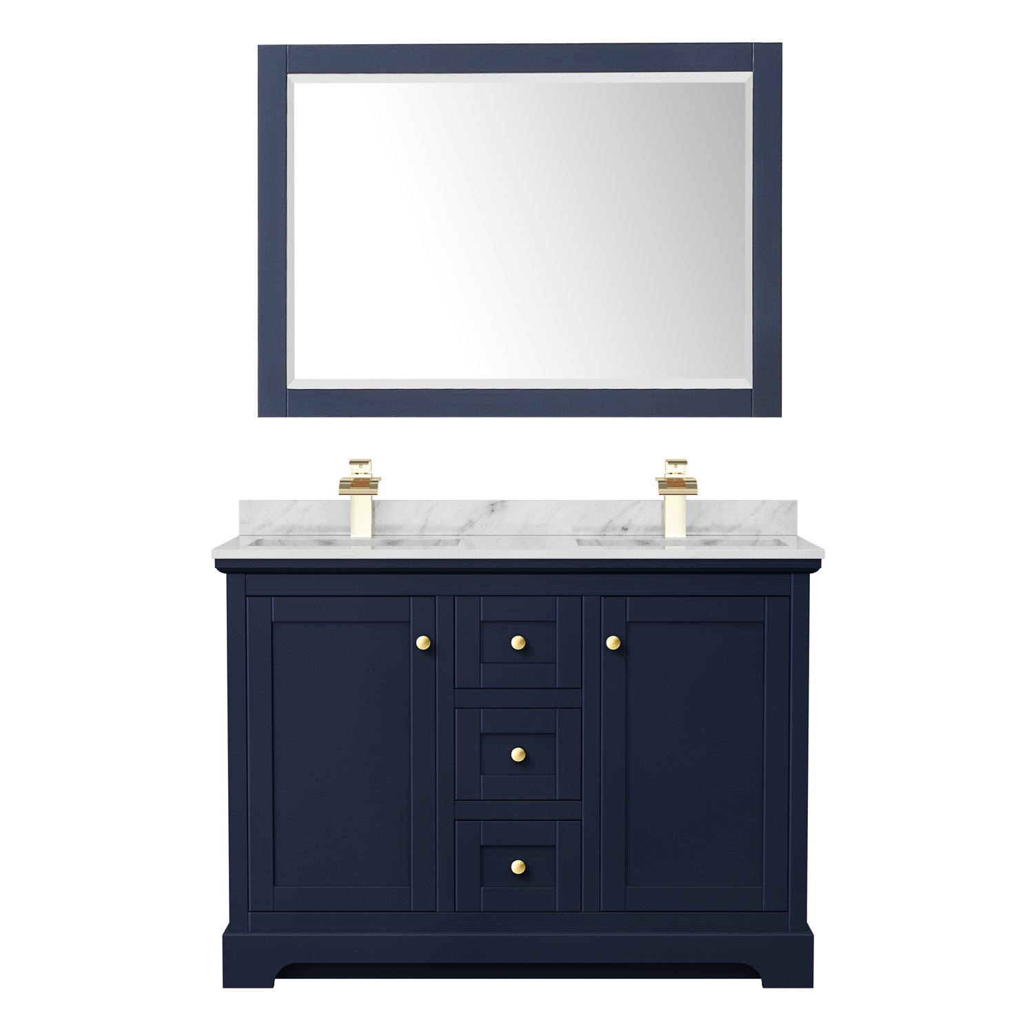Avery 48" Double Vanity in Dark Blue, Top, Square Sinks, 46" Mirror