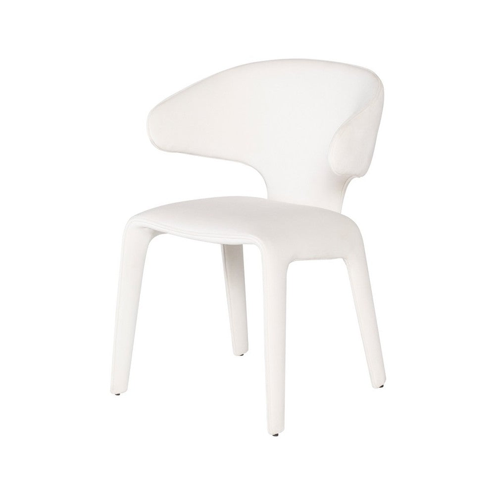 The fluid lines of the Bandi dining chair create a soft and organic addition to any dining room. In rich velour, the gently curved back makes a graceful statement from behind. Its beautifully constructed with sturdy, upholstered legs and a shapely design.