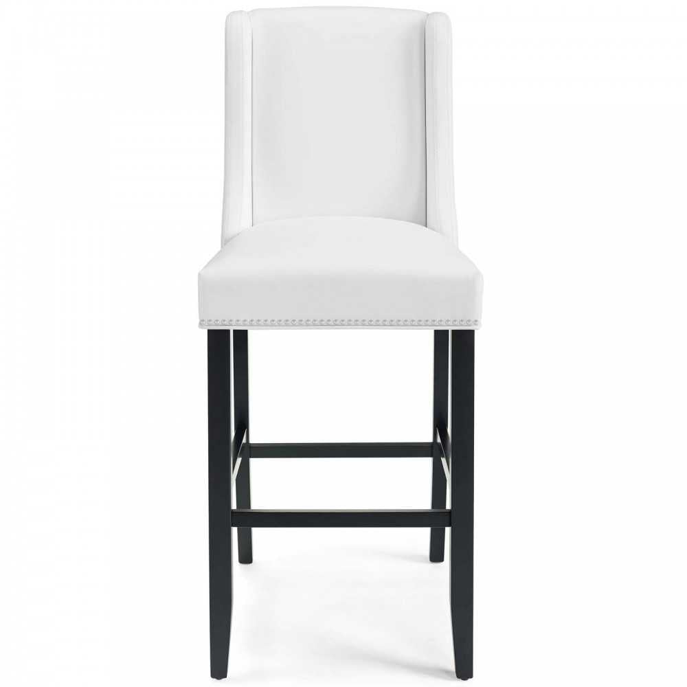 Explore the vast riches of a treasured heritage with the Baron Faux Leather Bar Stool. Baron is an exceptionally made modern bar stool with an elegant back, polished nailhead trim, and footstool support. This dining pub stool features dense foam padding with a sinuous spring support system for added comfort and support. Boasting a solid wood frame with tapered legs and non-marking foot caps, Baron is a stylish faux leather bar stool perfect for the apartment or home. Bar Stool Weight Capacity: 500 lbs.