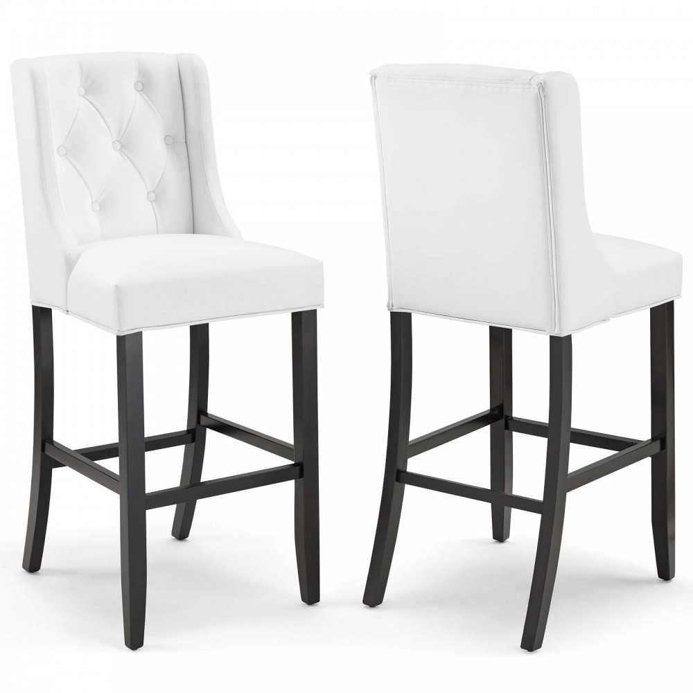 Bestow splendor with the Baronet Tufted Button Faux Leather Upholstered Bar Stool. Featuring dense foam padding, sinuous spring support, and smooth faux leather upholstery, enjoy a luxe seating experience with this luxurious tufted button bar stool. Complete with sleek curves and dignified form, this modern bar stool with solid wood legs with stretcher supports and non-marking foot caps is the perfect choice for the home bar seating area. Bar Stool Weight Capacity: 500 lbs.