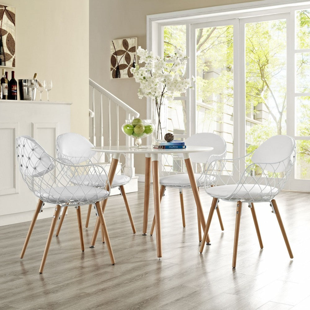 There comes a time when a person just needs a basket to sit in. Basket conveys that open-wire effect to perfection with a minimalist chair that is maximal on style. Suitable for indoor or outdoor use, Basket is made with a powder coated white metal frame and soft vinyl cushion and backrest that provides surprising comfort. Perfect for patios, backyards, kitchens or dining areas, Basket comes fully assembled and is as contemporary as it gets.