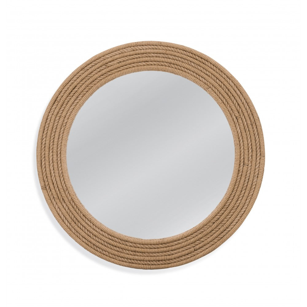 Above Board Round Wall Mirror has a rope layered frame with a beveled clear glass mirror.