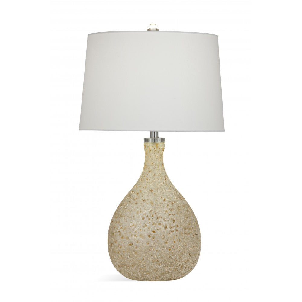 The Aldrich table lamp delivers high style with an organic feel by using hand-distressed art glass techniques. Naturalistic surface texturing with gold and beige highlights create interest and an artisan quality design.