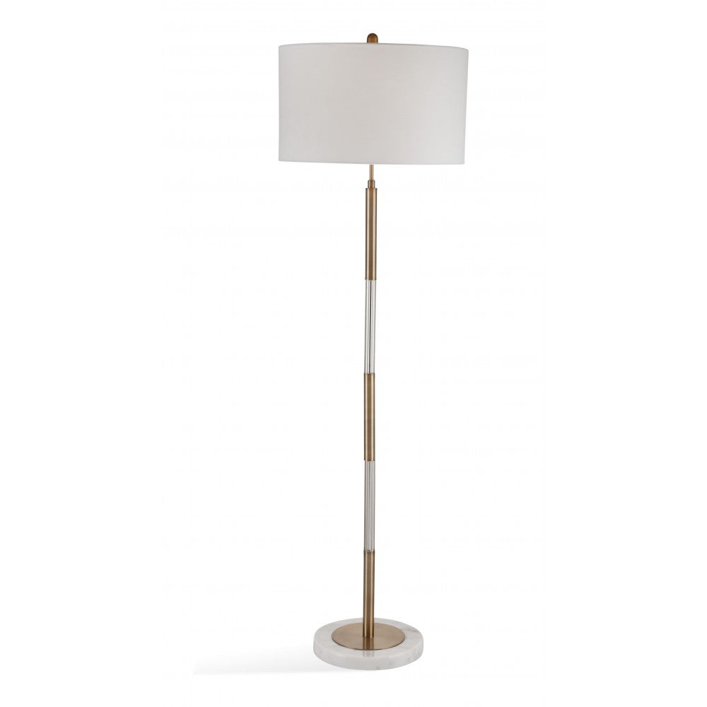 Alyissa Floor Lamp is crafted of crystal and metal with a white marble base and a white drum shade.