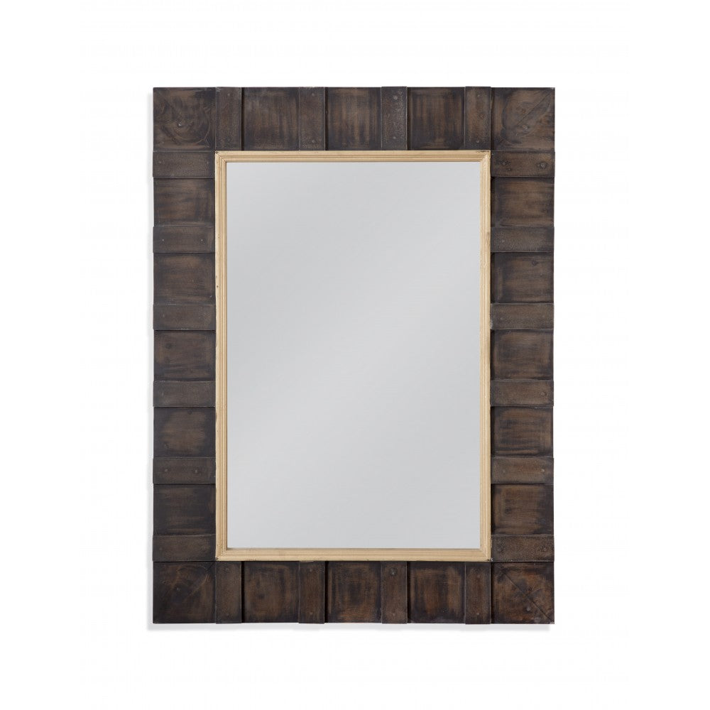 Dimensions Wall Mirror is rectangular with a distressed Gray frame with brown undertones and a gold fillet between the frame and mirror.