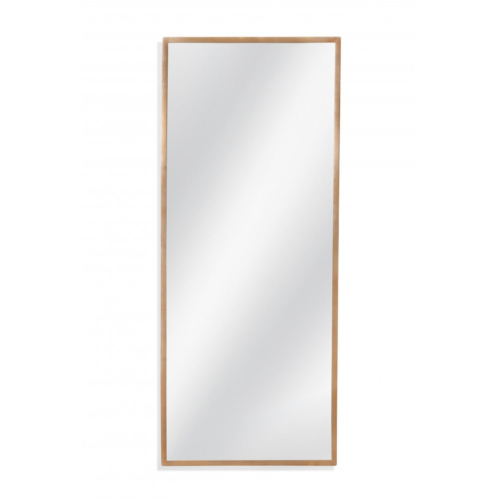 Jamesford Wall Mirror is a rectangular wall mirror featuring antique brass streamlined frame.