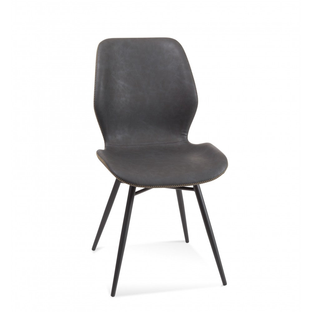 The Paul Side Chair is a modern tapered back chair featuring a detailed oversized stitching with angled legs and an X detail base.
