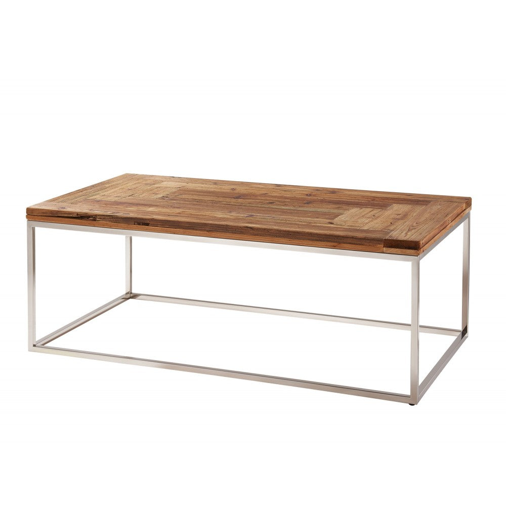Boho lifestyle with contrasting rusticated fir and polished stainless steel base.