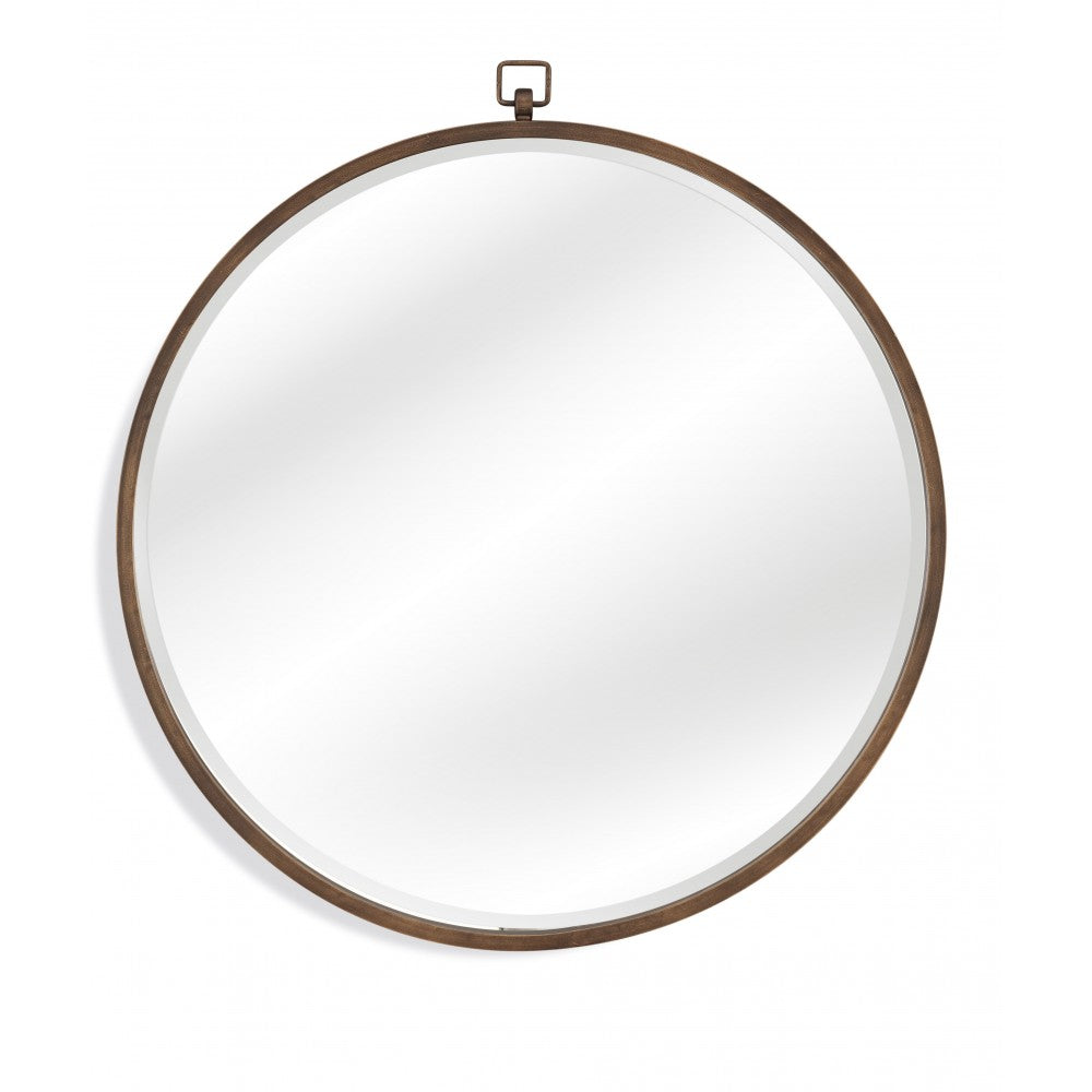 The Quinn wall mirror is simple yet stunning. This piece is an antique bronze sphere that provides a contemporary-natural feel to any living area.