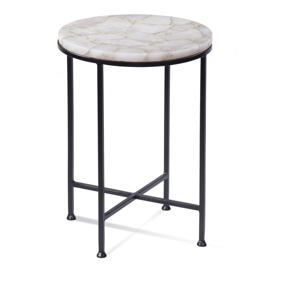 The Renee Accent Table has a beautiful white agate round stone top set above a black iron criss cross table base.