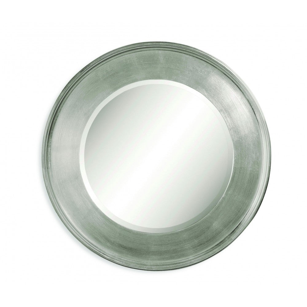 This silver leaf round wall mirror with 6' profile makes a stunning statement in any room. The design is simple yet elegant, and includes a beveled mirror.