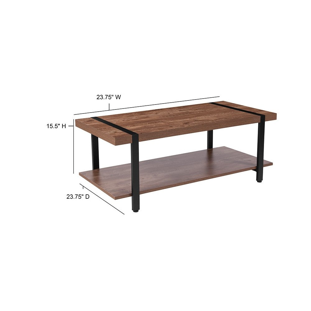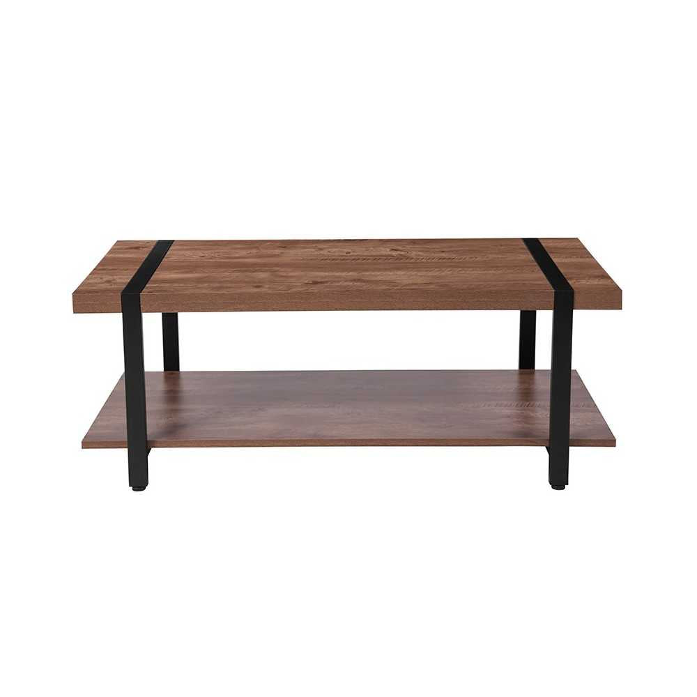Clean, contemporary design meets rustic industrial style in this charismatic coffee table. The frame wraps around the top offering an additional dimension to the top. This table combines a durable, laminate top with straight legs and a wrapping frame to provide a look that's sure to tie any trendy room's presentation together. Not only does its ample surface area serve as a convenient space for holding belongings, it's also great for displaying magazines, newspapers, and brochures. Plus, its rustic design lends a genuine wood grain appearance for an attractive, high-end look. Keep this piece looking great with a water-based cleaner. [NAN-JH-1727-GG]