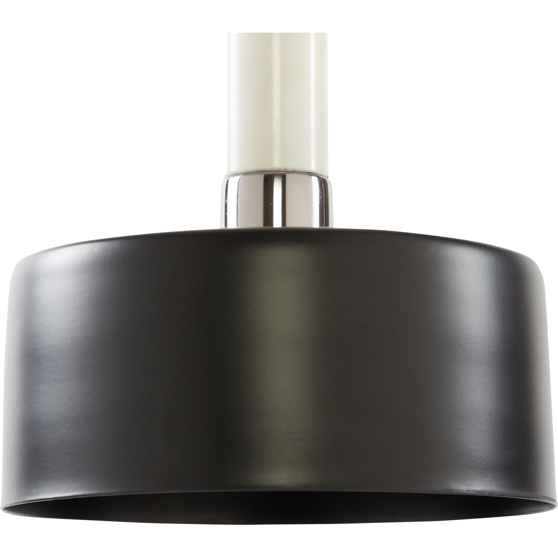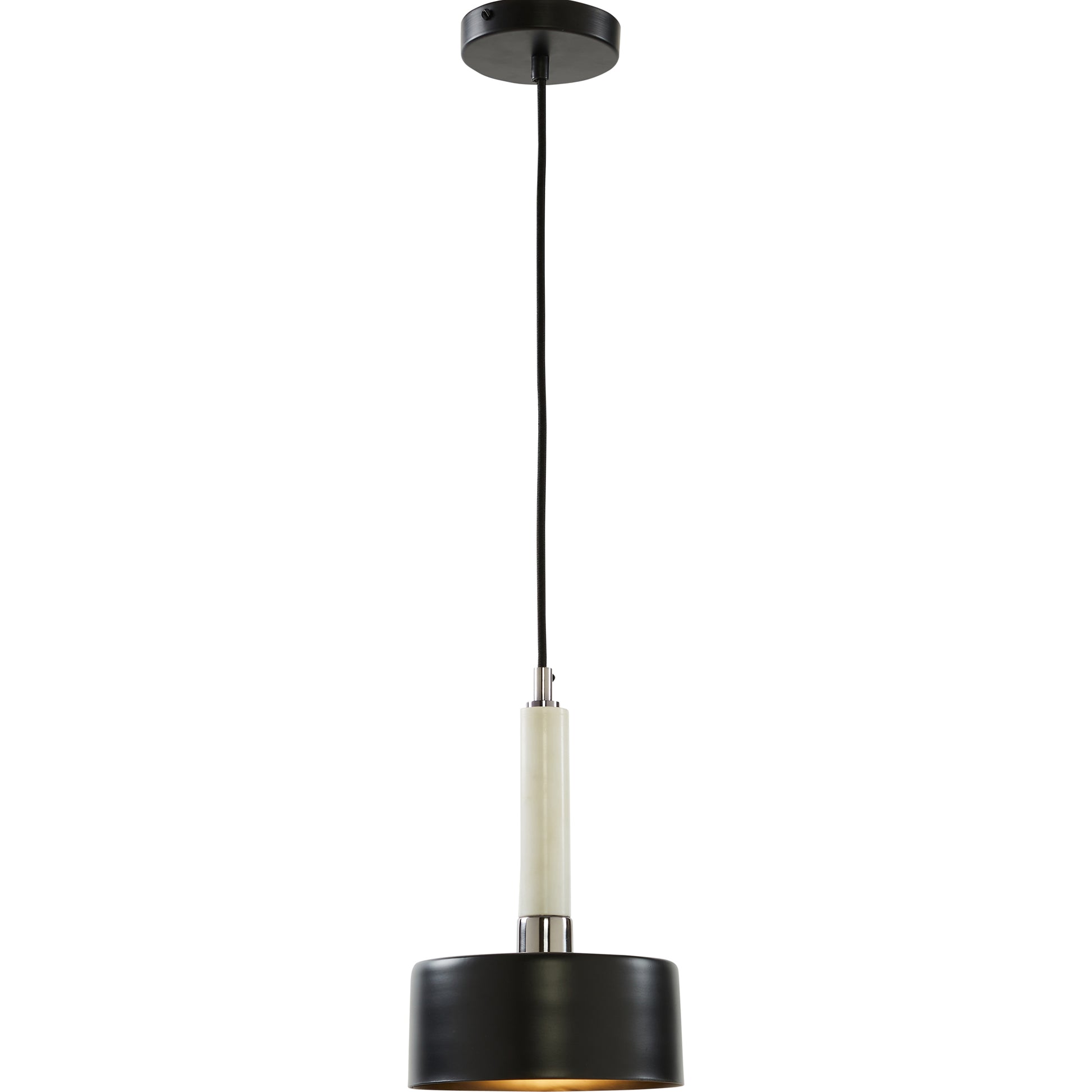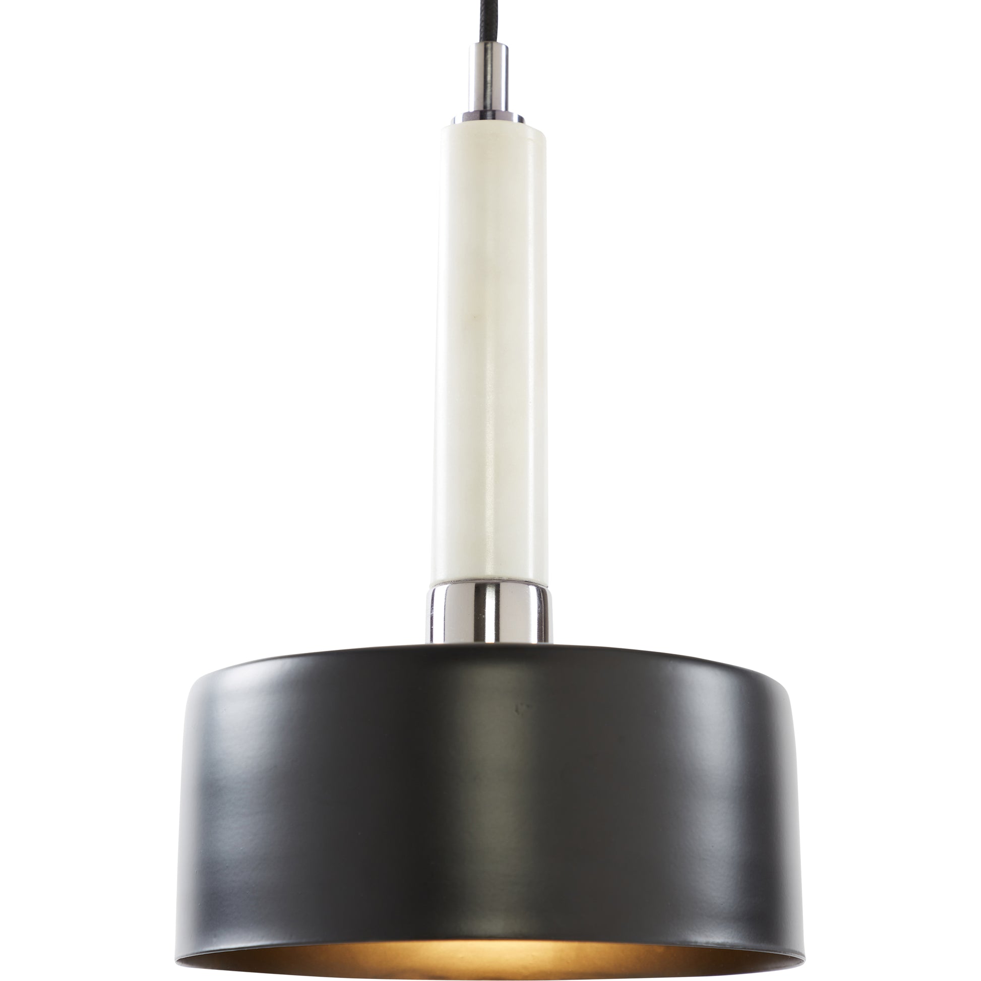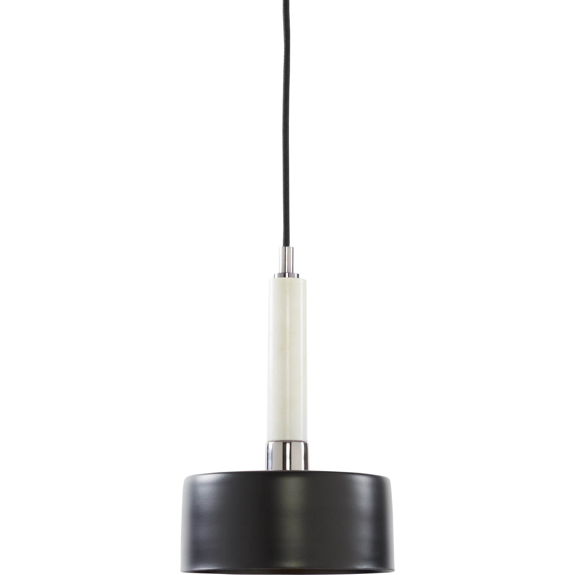 With its cord hanging from the ceiling, this light fixture radiates a blend of flair, fun and fashion from every angle. Composed of a mixture of matte black iron, white marble, and black nickel, it holds a luxe quality that can't be ignored. The design give it a towering quality that enhances its effect.