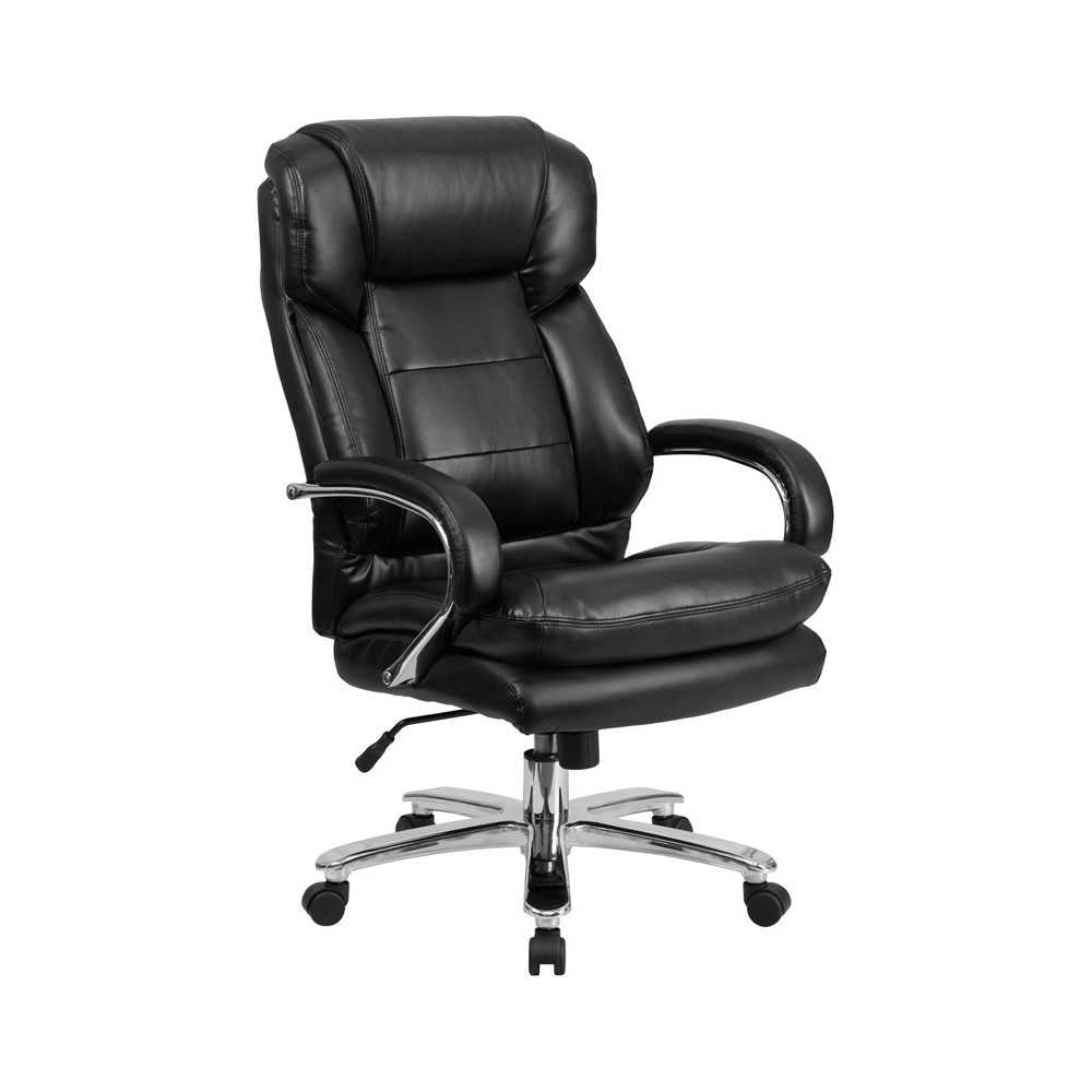 This Big & Tall LeatherSoft Executive Office Chair is an ideal chair for larger and taller professionals who spend long hours sitting behind a desk. An extended upper back with integrated headrest and built-in lumbar support reinforces healthy posture. The 22" wide swivel seat is double padded with 4" of foam. LeatherSoft is leather and polyurethane for added softness and durability. Raise or lower the seat using the pneumatic height adjustment lever for a custom fit. Generously padded loop arms reduce pressure on the shoulders and neck providing additional comfort. Turn the tilt tension adjustment knob to increase or decrease the amount of force needed to rock or recline and lock the seat in place with the tilt lock mechanism. This sturdy chair has a heavy duty chrome base, smooth rolling dual wheel casters and a 500 pound weight capacity. Whether you're buying chairs for a 911 dispatch office, call center, or control room, this 24/7 intensive use office chair is the right chair for the job. [GO-2078-LEA-GG]