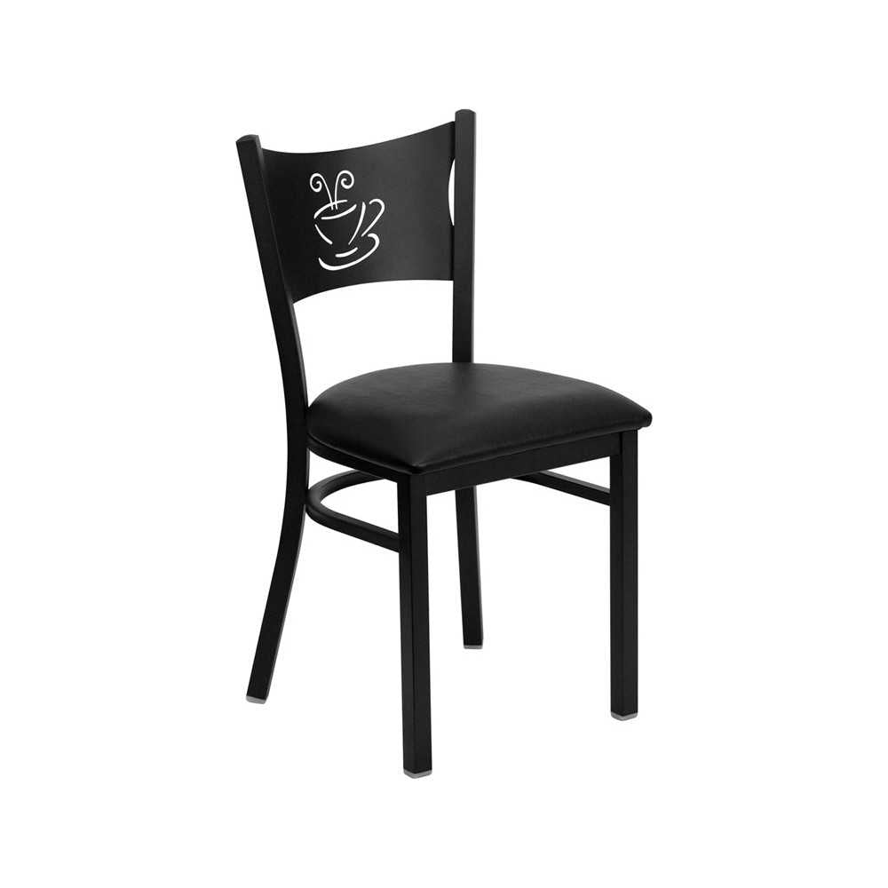 Black Coffee Back Metal Restaurant Chair - Black Vinyl Seat