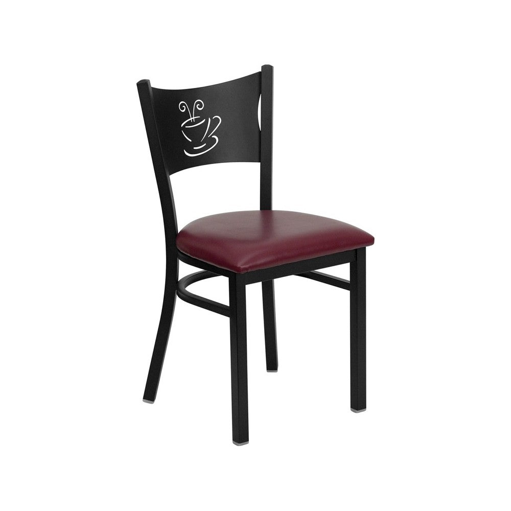 Black Coffee Back Metal Restaurant Chair - Burgundy Vinyl Seat
