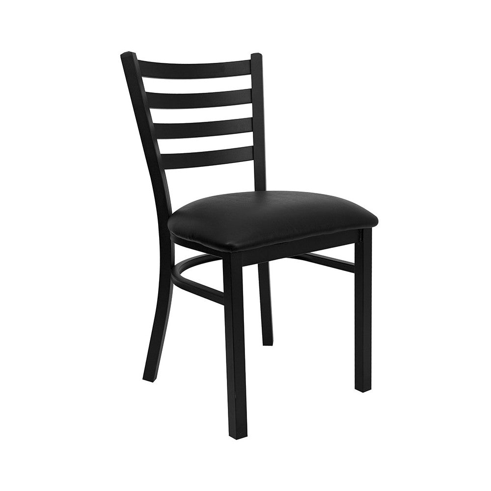 Black Ladder Back Metal Restaurant Chair - Black Vinyl Seat