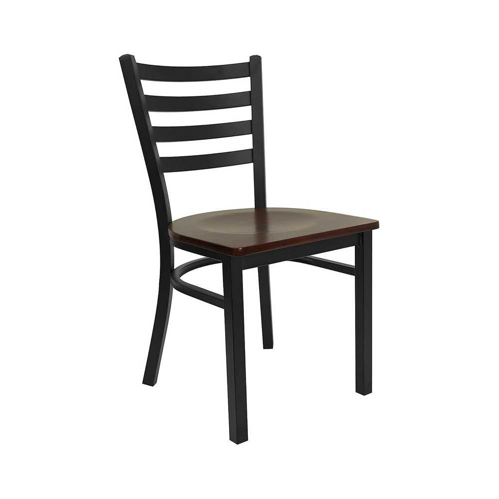 Black Ladder Back Metal Restaurant Chair - Mahogany Wood Seat