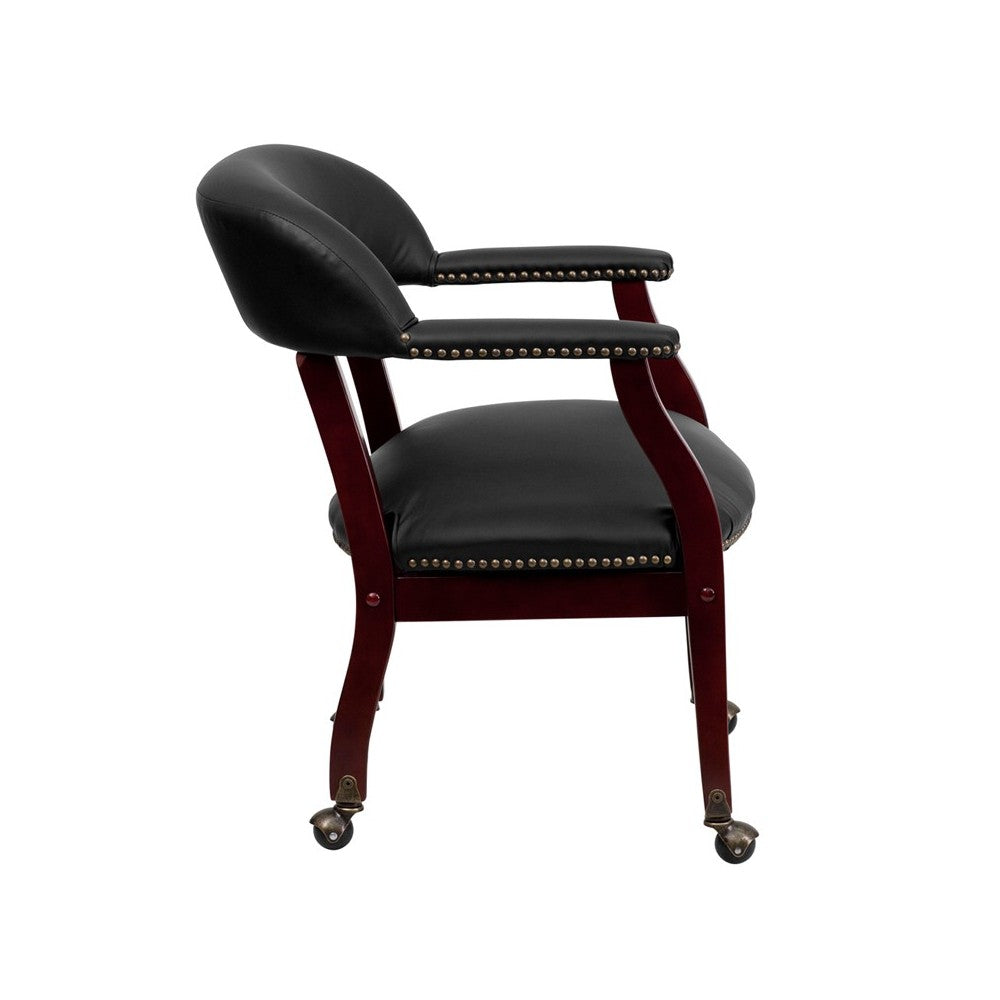 Black LeatherSoft Conference Chair with Accent Nail Trim and Casters