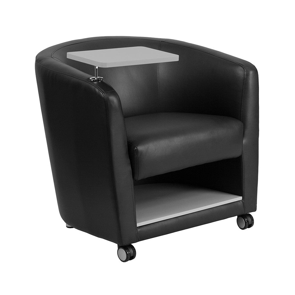 Black LeatherSoft Guest Chair with Tablet Arm, Front Wheel Casters and Under Seat Storage