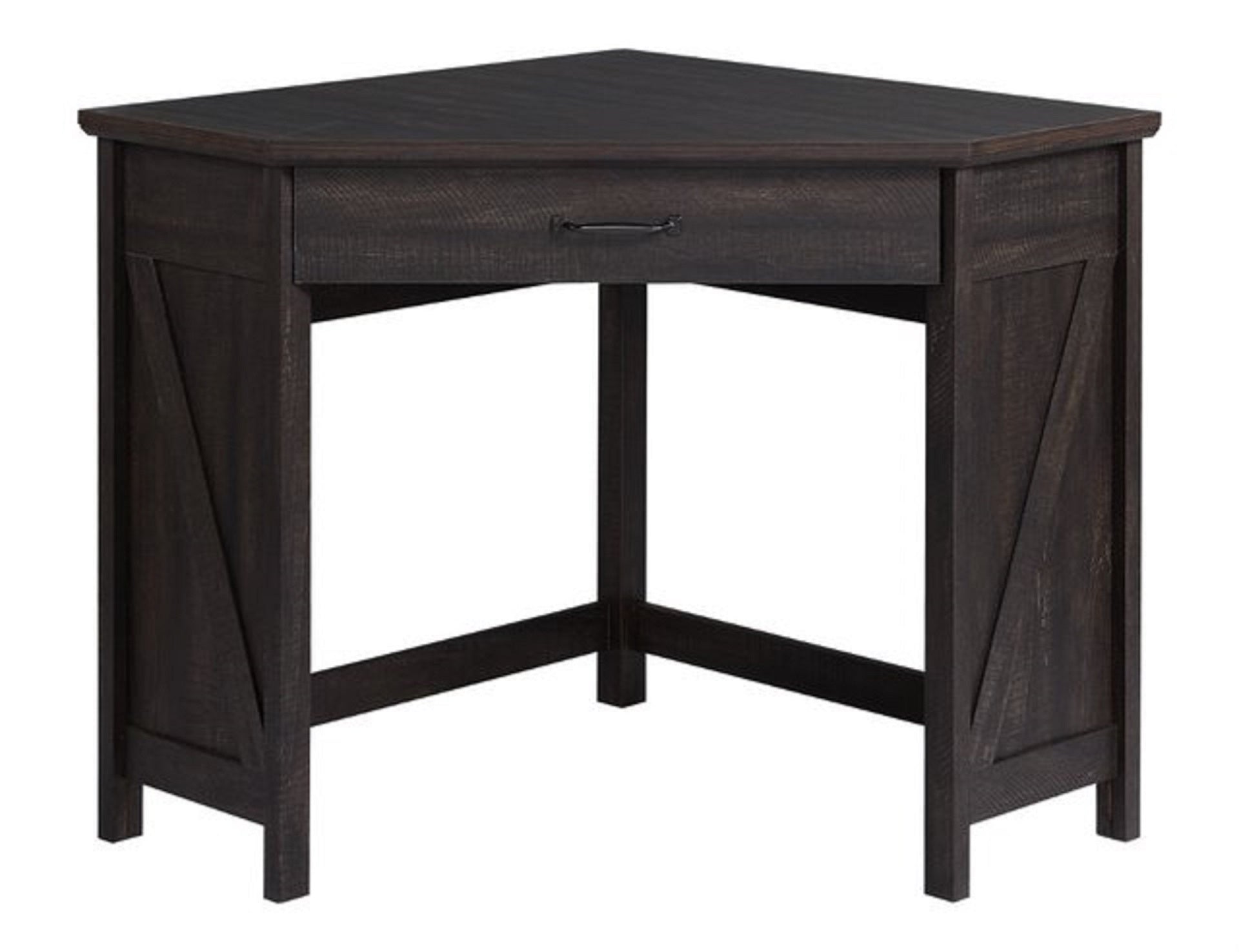 This beautiful Black Oak finish Corner Desk is sure to make the perfect addition to any home office or workspace. The storage drawer provides extra storage for office supplies while the decorative side panels give this piece a rustic barnwood feel.