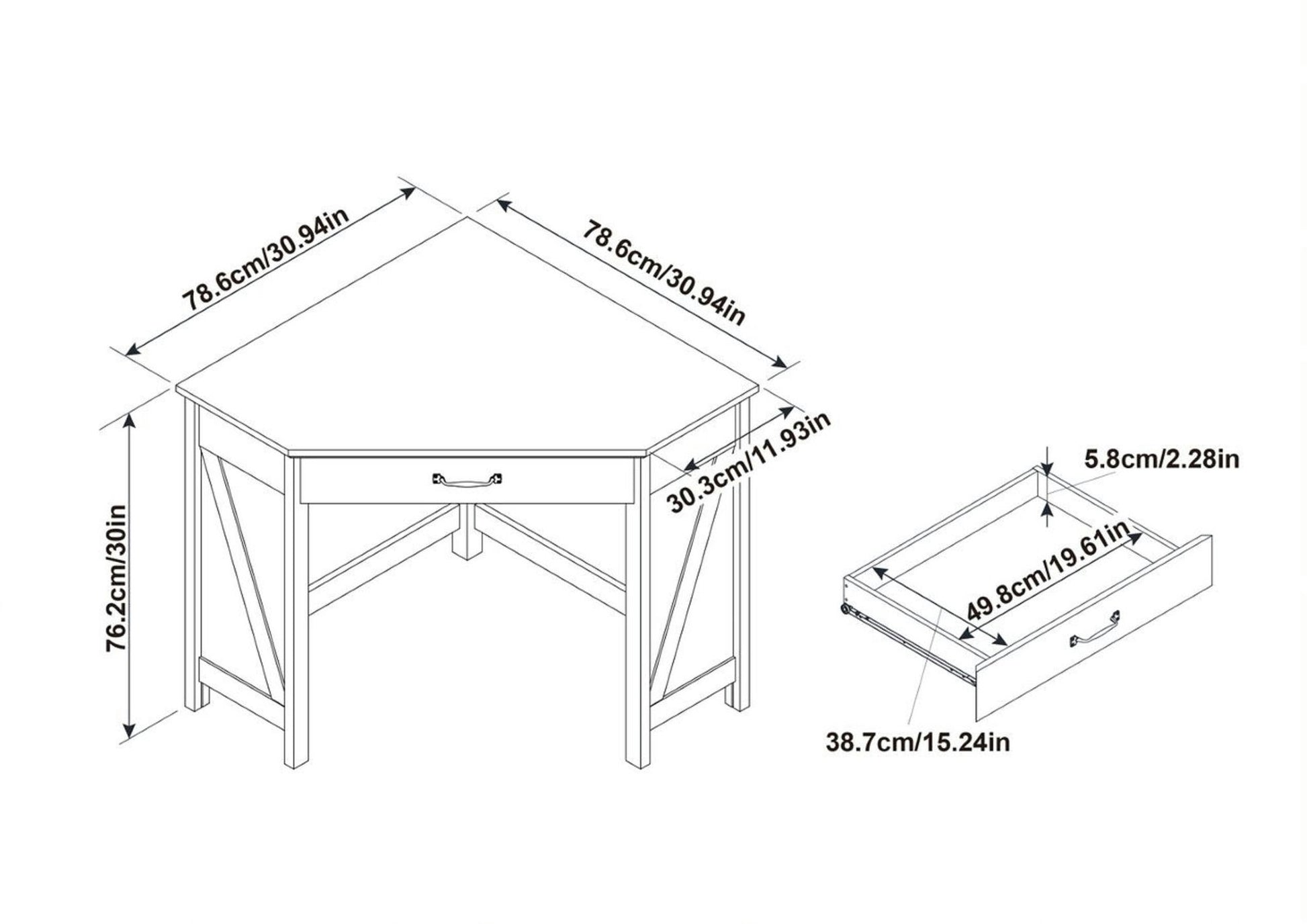 - Comfortably fitting in any home, studio, apartment, and office, The small corner writing desk maximizes space in compact rooms.