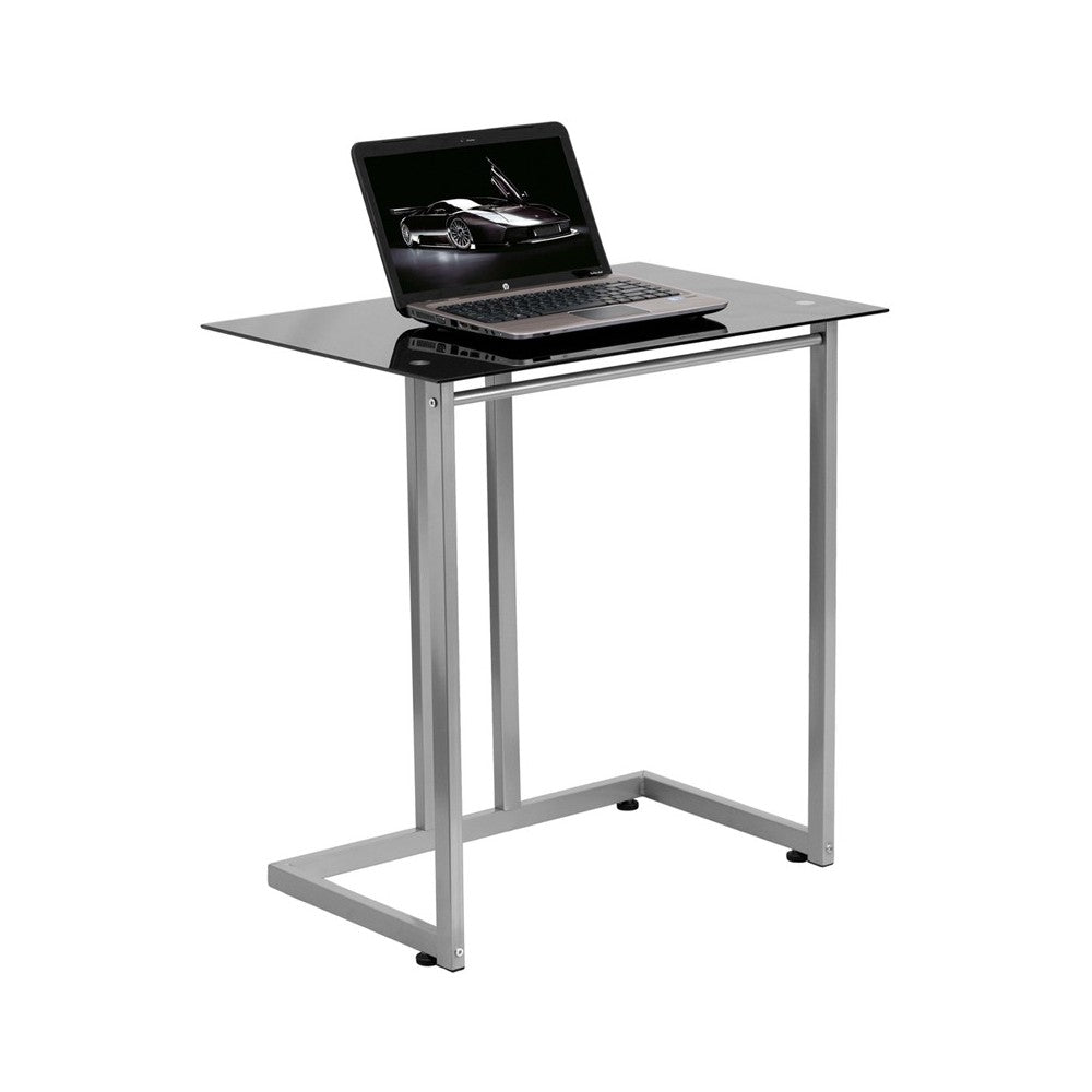 Never settle for less than what your impeccable style demands. The streamlined design of this portable laptop computer desk attracts the buyer who needs something simple yet modern and elegant. This compact sized desk is perfect for small spaces when the desk is to be used for writing, reading, homework or laptop usage. Keep this piece looking great with a water-based cleaner. A marriage of black tempered glass to the cantilever metal frame exudes class and sophistication that never goes out of style. [NAN-2905-GG]