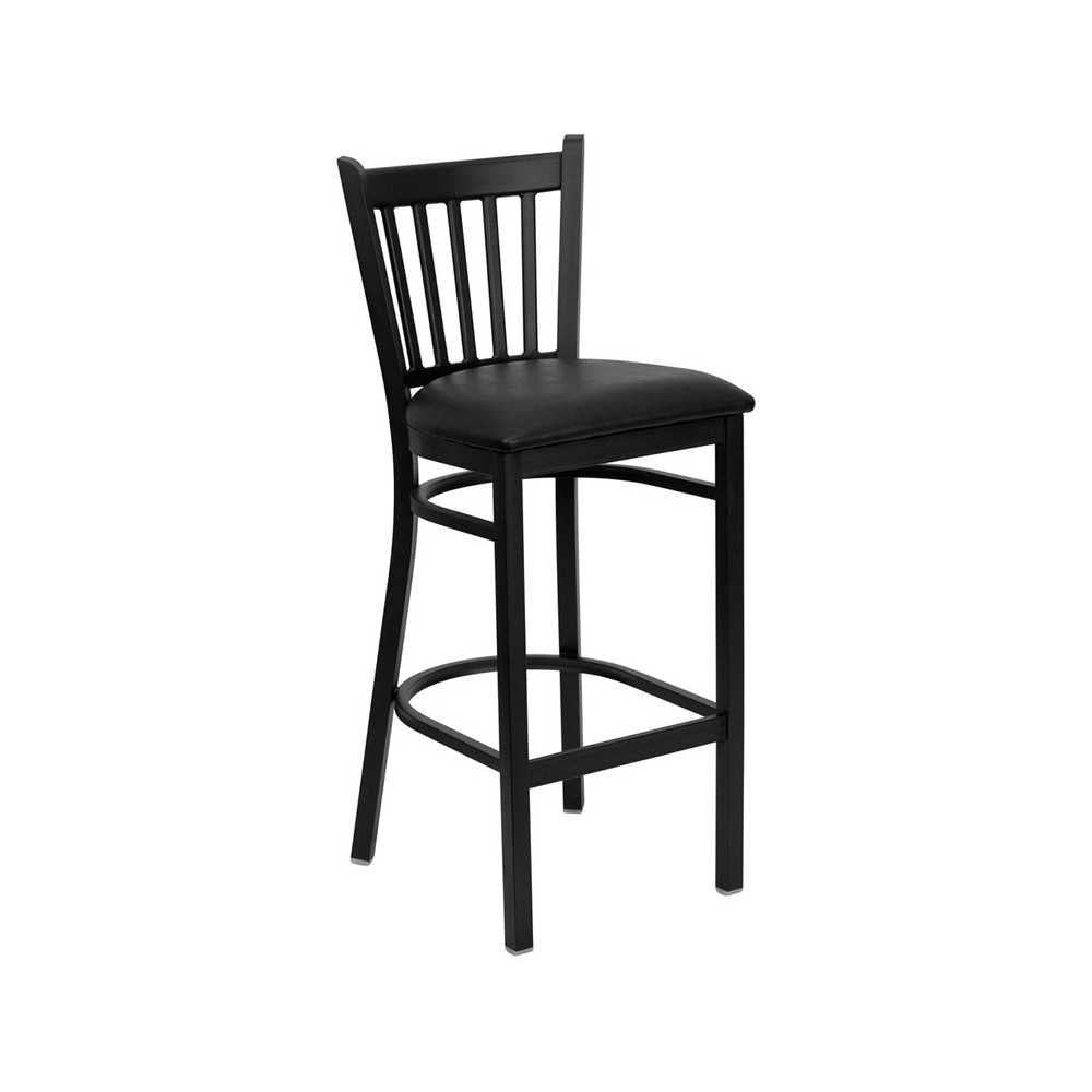 Black Vertical Back Metal Restaurant Barstool - Black Vinyl Seat