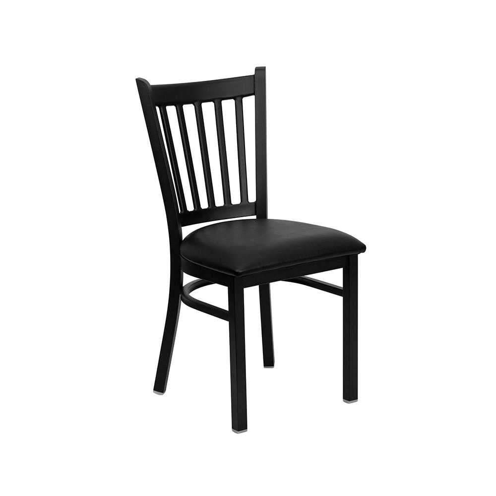 Black Vertical Back Metal Restaurant Chair - Black Vinyl Seat