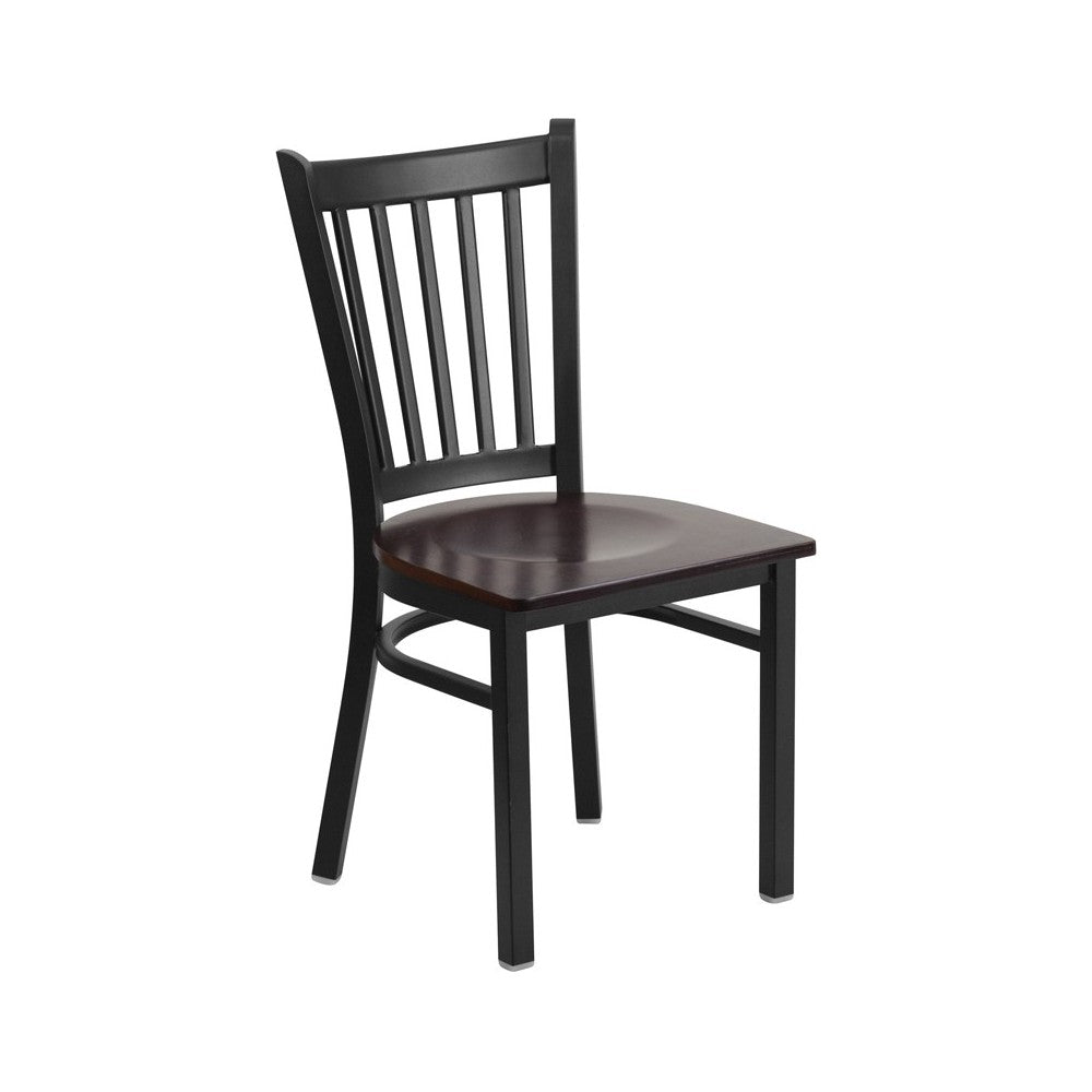 Black Vertical Back Metal Restaurant Chair - Walnut Wood Seat