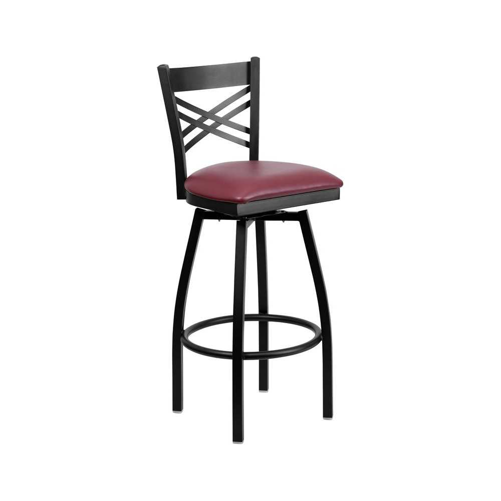 Black ''X'' Back Swivel Metal Barstool - Burgundy Vinyl Seat