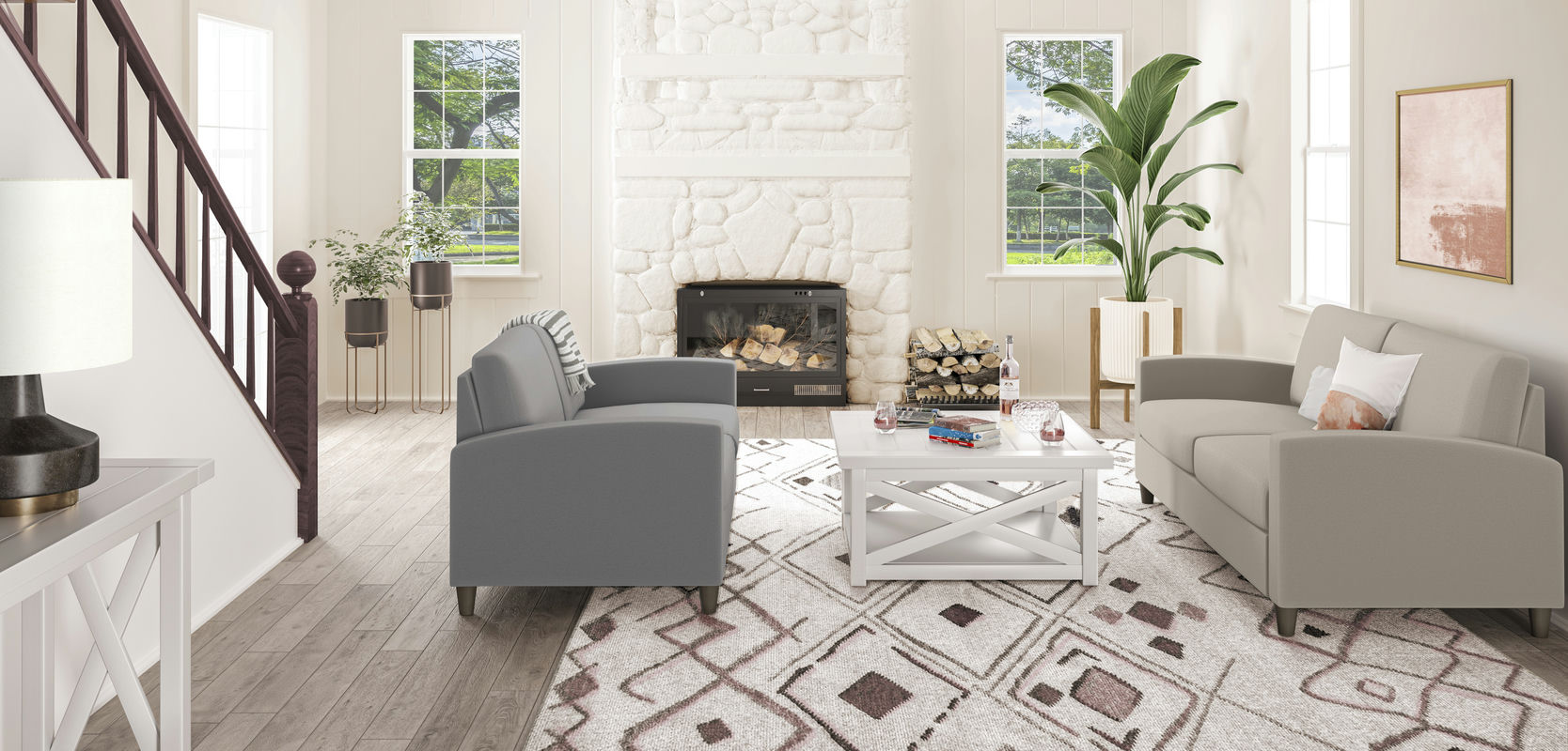 Whether used on its own or as part of a larger seating arrangement, you're adding comfort and style with this Homestyles Blake Loveseat. Perfect for any space from a small apartment to a great room, it delivers clean lines, contoured slope arms, and a neutral steel colored fabric. Supportive, pillow-back cushions provide superior comfort, and the hardwood frame creates a solid foundation.