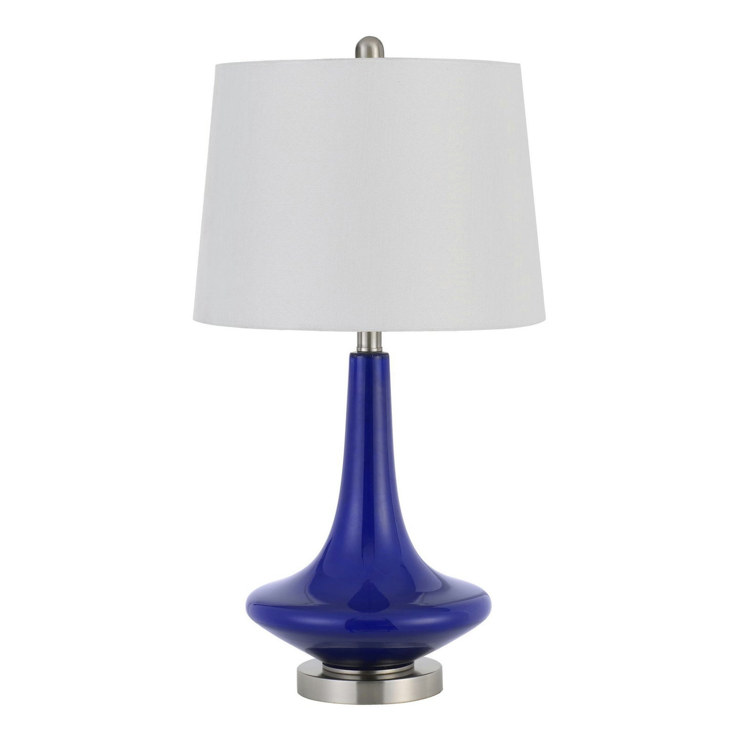 100w kleve glass table lamp with taper drum hardback linen shade (priced and sold as pairs)