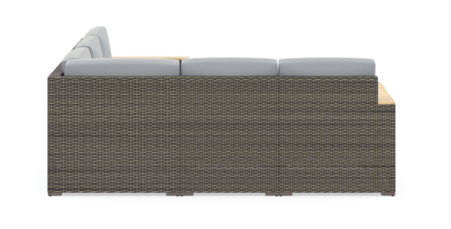 With its thick weave and elegant color, the Boca Raton collection captures the organic beauty of rattan. This five-seat sectional consists of two corner chairs and three armless chairs that can be arranged in multiple configurations, both indoors and outdoors. The worry-free design features weather-resistant rattan, fade-resistant cushions, solid wood Acacia arms, and a sturdy steel frame. Extra deep seats make it easy to find your ideal posture.