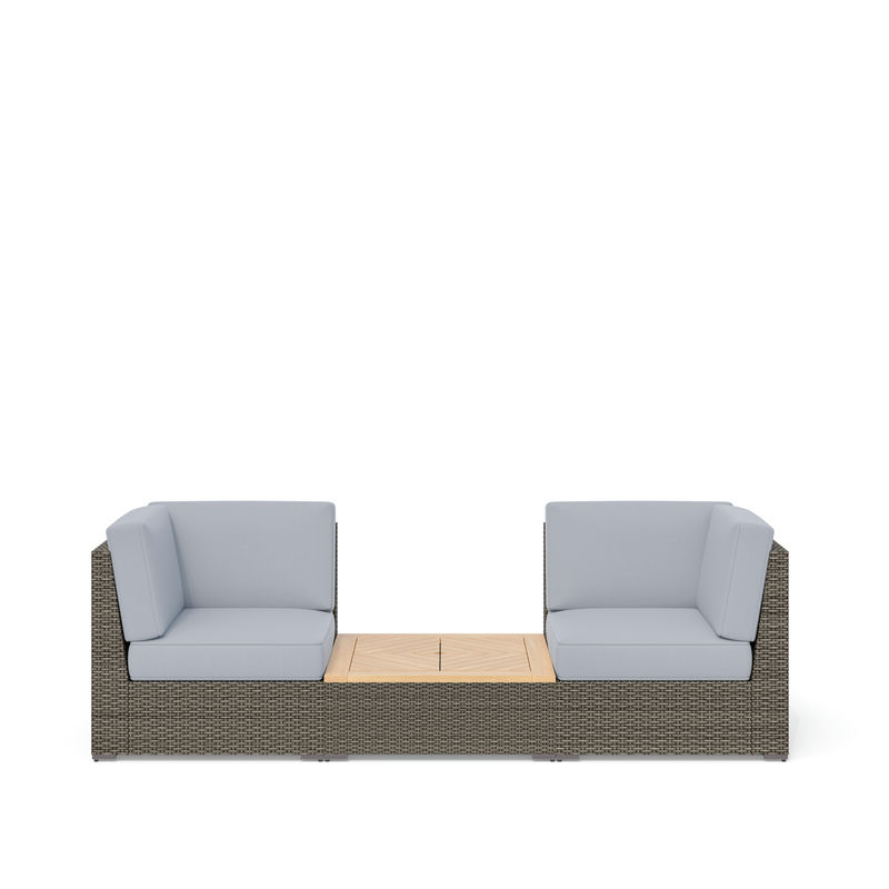 Turn even a small corner into your new favorite spot with this Homestyles Boca Raton 3-Piece Outdoor Set. Two side chairs bring the comfort of a living room into any environment, indoor or outdoor. The coffee table features a water-resistant Acacia wood top with two removable areas that reveal hidden plastic storage bins. The weather-resistant cushions and all-weather rattan deliver solid performance year after year.