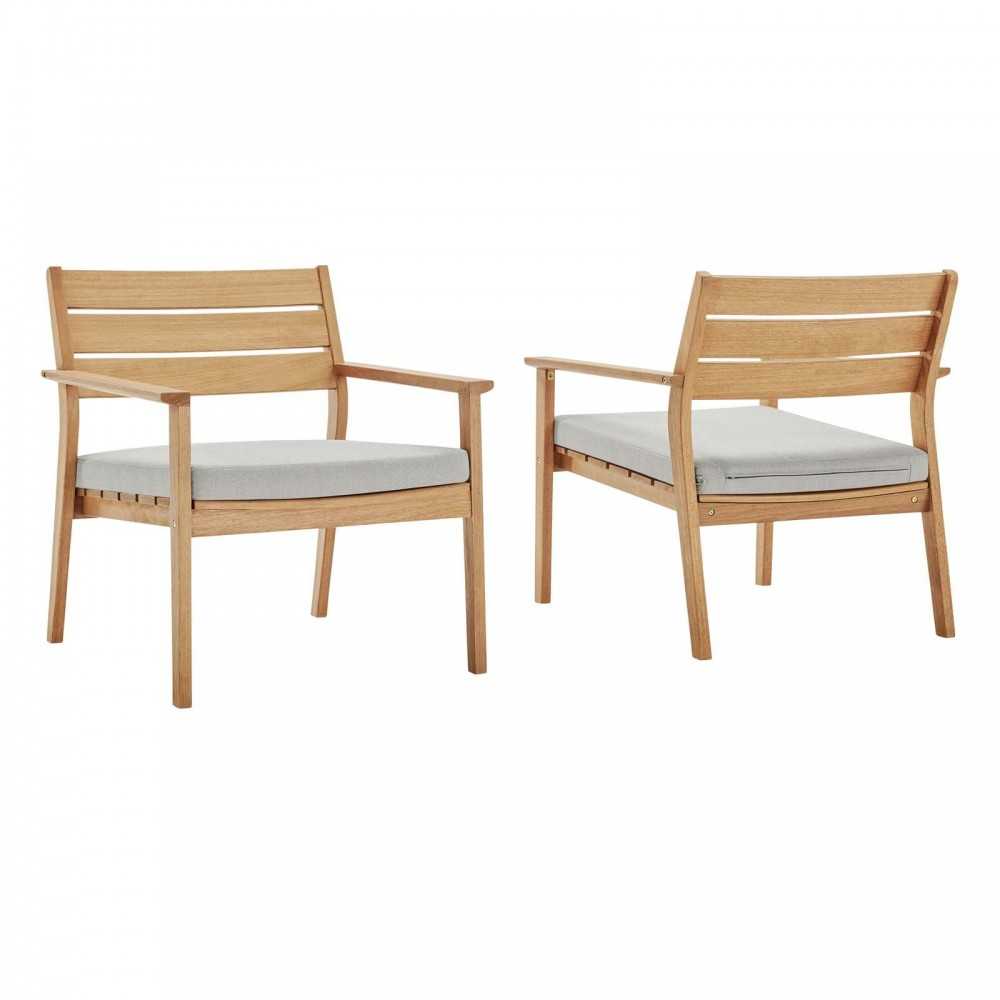 Breton Outdoor Patio Ash Wood Armchair Set of 2