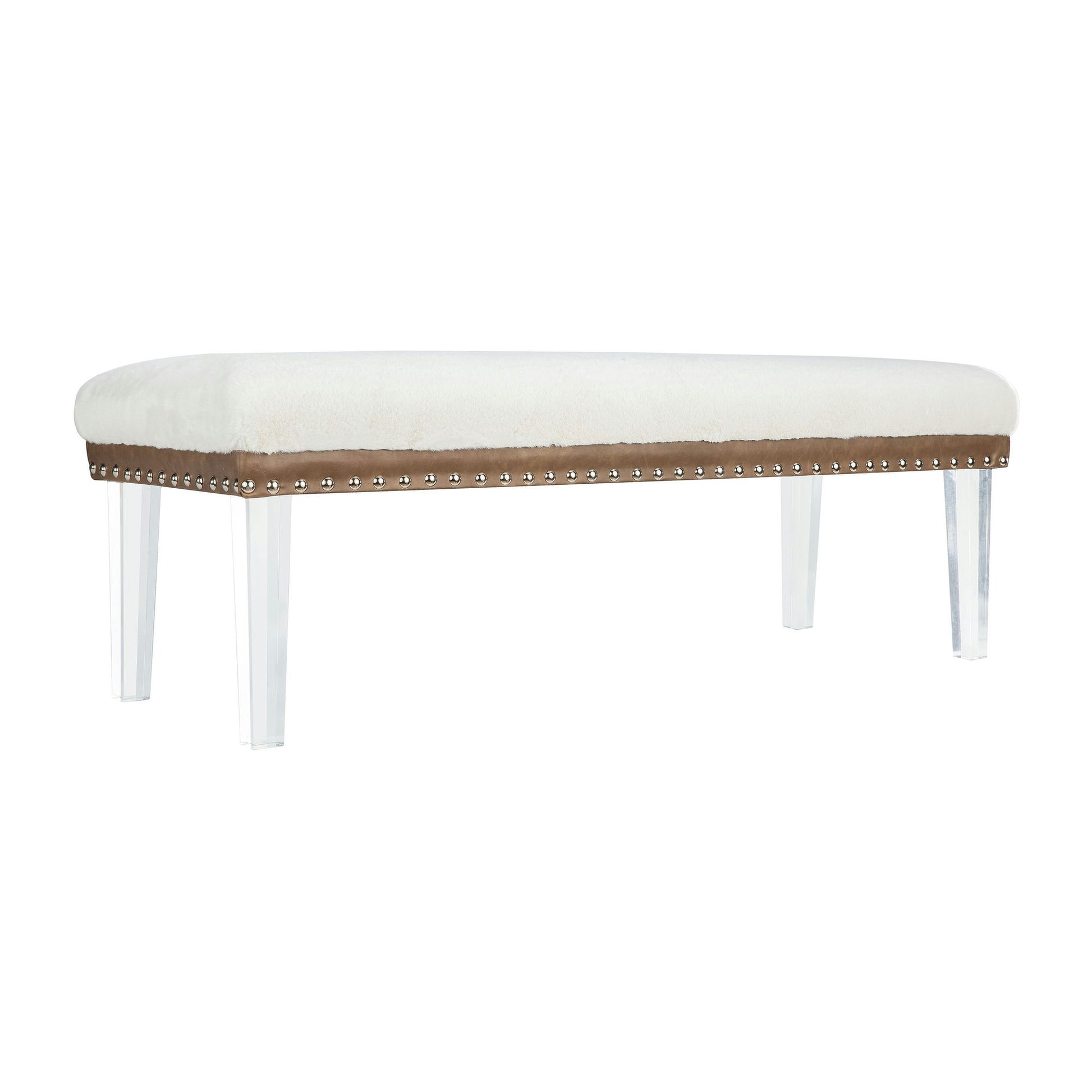 Brianna Modern Luxury Faux Fur Upholstered Bench with Clear Legs - Snow