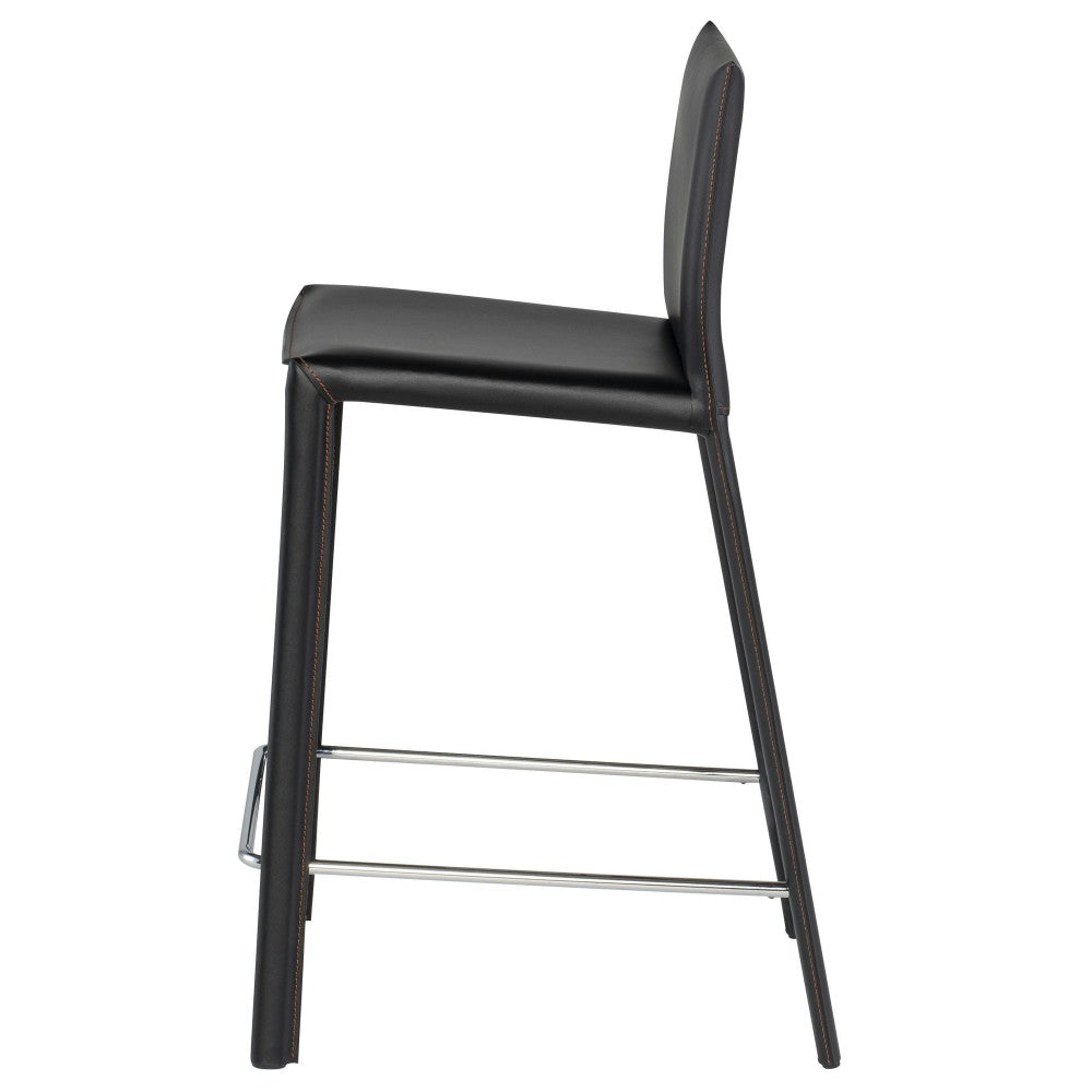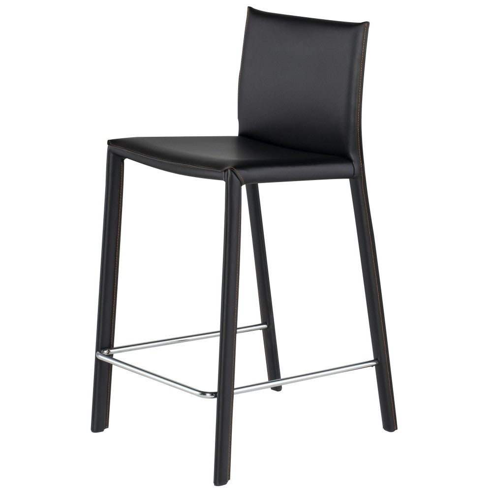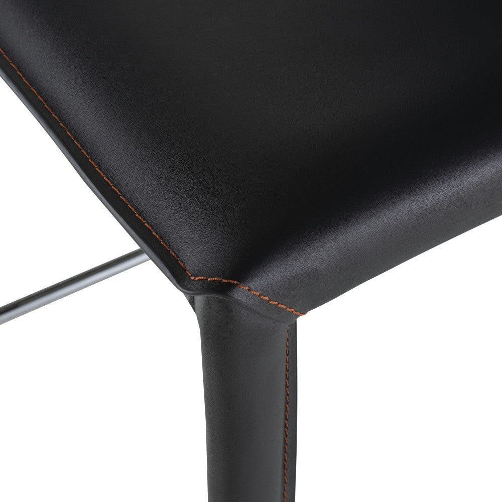 The Bridget counter stool is covered from head to foot in sumptuous buttery leather. The upholstery is finished with contrast stitching adding distinction and refinement. A smart but simple wrap around foot rest in high polish stainless steel forms an appealing counterpoint to the rich leather upholstery.