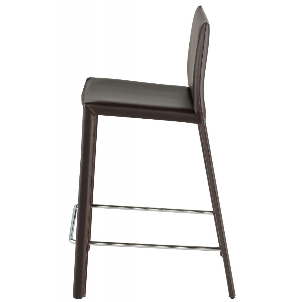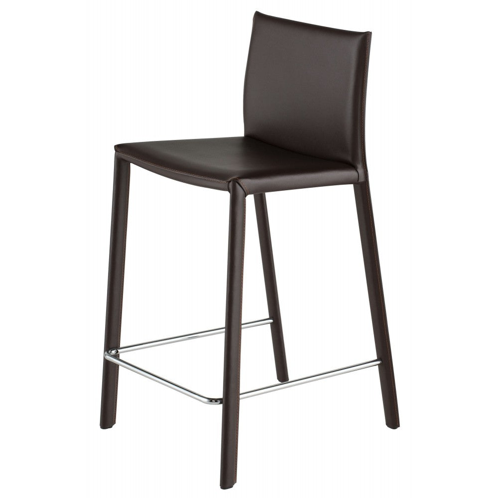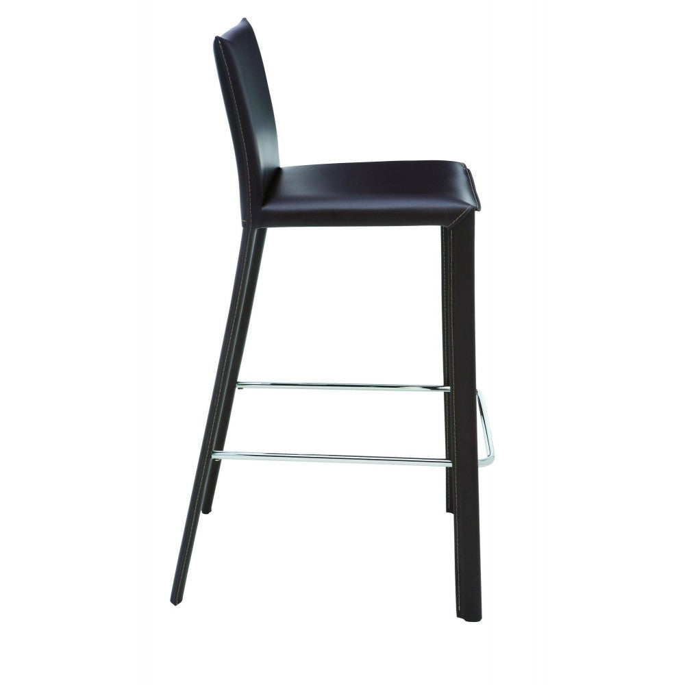 The Bridget counter stool is covered from head to foot in sumptuous buttery leather. The upholstery is finished with contrast stitching adding distinction and refinement. A smart but simple wrap around foot rest in high polish stainless steel forms an appealing counterpoint to the rich leather upholstery.