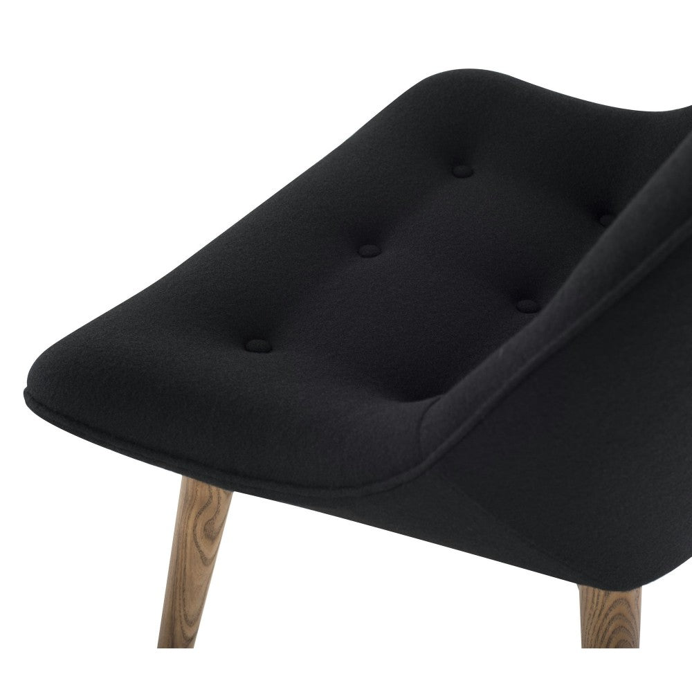 Inspired by the optimistic forward looking designs of the mid-twentieth century, the Brie dining chair offers comfort and exuberance more commonly associated with living-room furniture. Padded wool upholstery and solid hard-wood ash adds to the authentic, all-natural spirit of this comfortable chair.