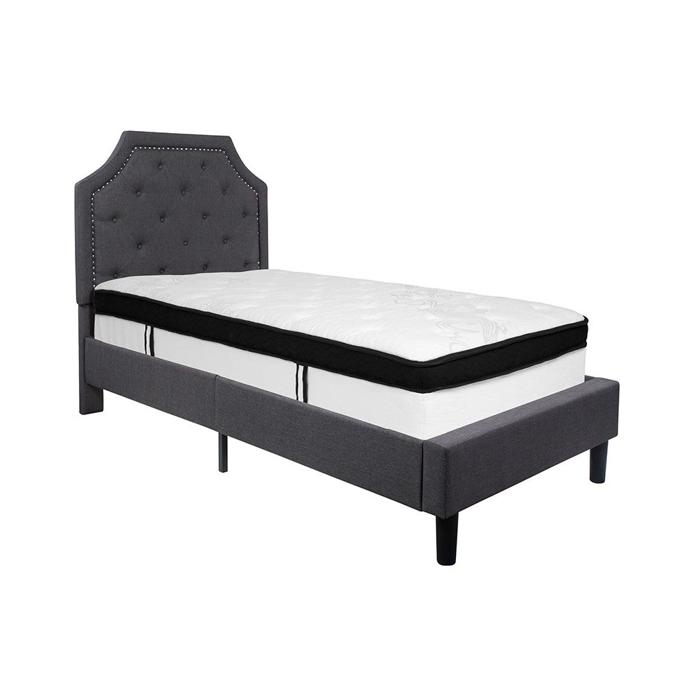 Brighton Twin Size Tufted Upholstered Platform Bed in Dark Gray Fabric with Memory Foam Mattress