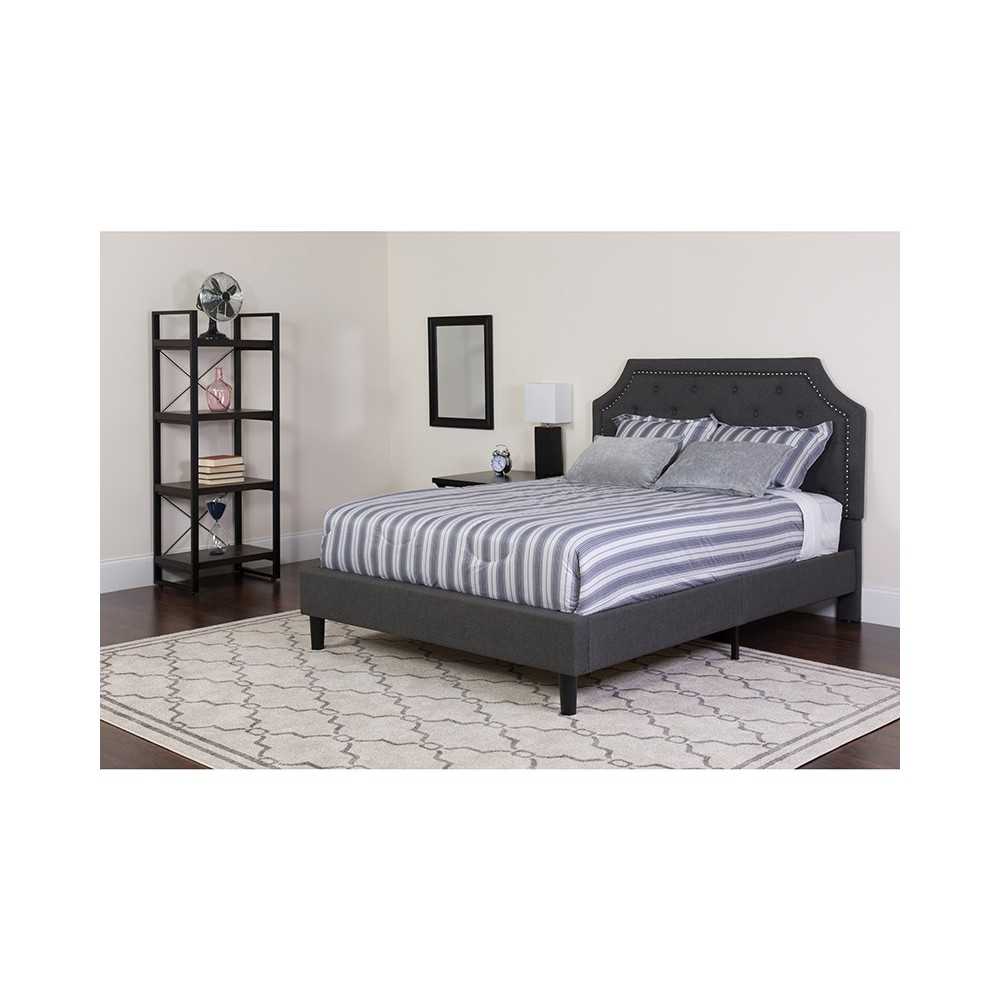 If you're looking for something traditional with modern flair, this cutout panel platform bed will give you what you've been looking for. When your bedroom needs change, start with your bed frame, the headboard with cutout sides is a statement piece all on its own. The panel headboard features gorgeous nail trimming and button tufted upholstery. The low frame will keep the bedroom feeling open. If you don't like making up the bed, this bed is perfect since it is designed without a footboard. The frame features a center support leg and 15 wooden slats that are designed to support the mattress without the use of a box spring. The 12" pocket spring mattress provides superior motion isolation and supports the contours of your body. The interior make-up consists of pocket spring coils and foam. The mattress instantly starts expanding once you cut the plastic and will return to its original shape in 2 to 5 days. When you're ready for change, this stylish upholstered platform bed and mattress set will give you the upgrade that you seek. [SL-BM-13-GG]