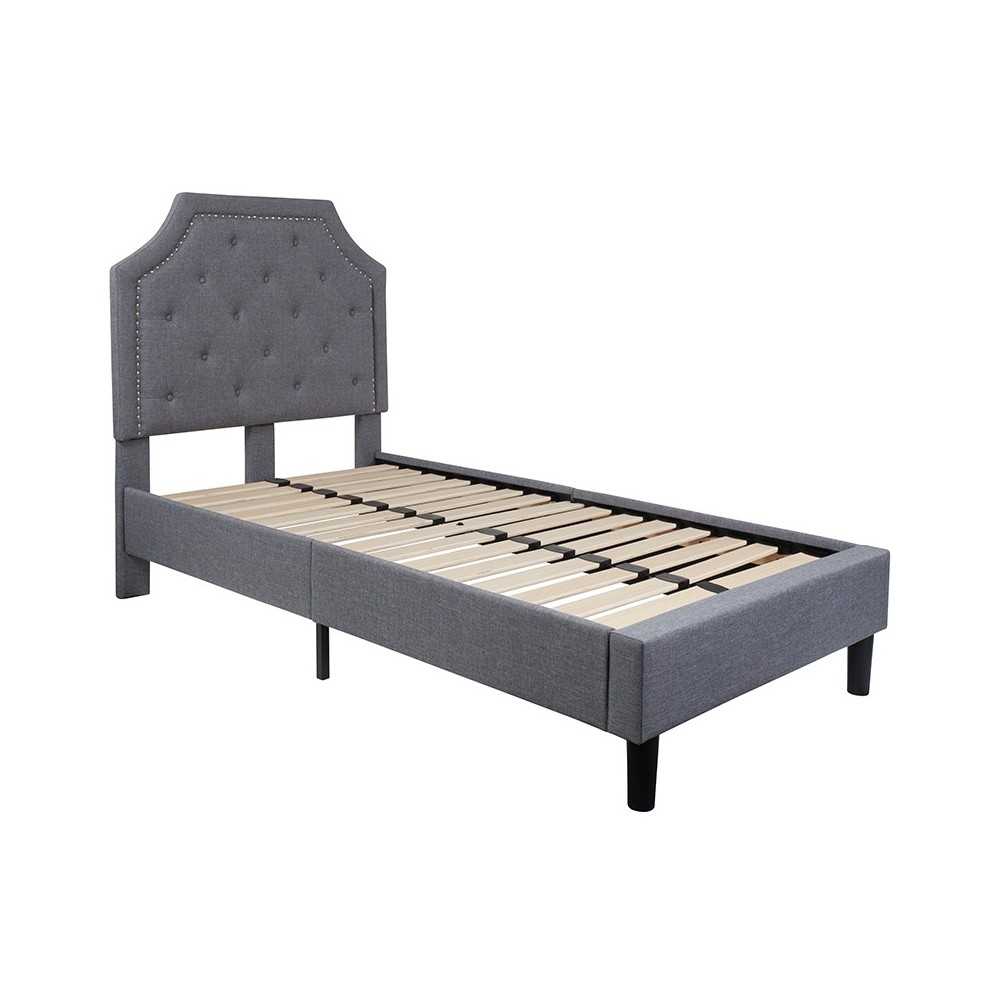 Brighton Twin Size Tufted Upholstered Platform Bed in Light Gray Fabric