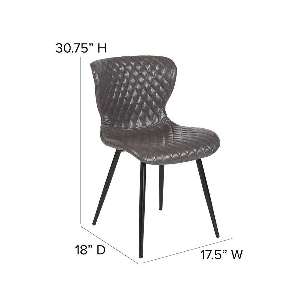 Whether you're adding seating to your waiting room or your dining room you want it to be elegant and attractive. This designer chair, featuring durable gray vinyl upholstery, has a unique diamond quilted pattern seat and back that is very appealing. The stylishly curved back paired with the waterfall front seat edge that removes pressure from the lower legs will ensure your guests are comfortable. The sturdy powder coated metal legs provide an artistic appeal, and also include plastic glides to help move the chair easily while also protecting flooring. This stylish chair can be used in the kitchen, or in the office as a side chair. [LF-9-07A-GRY-GG]