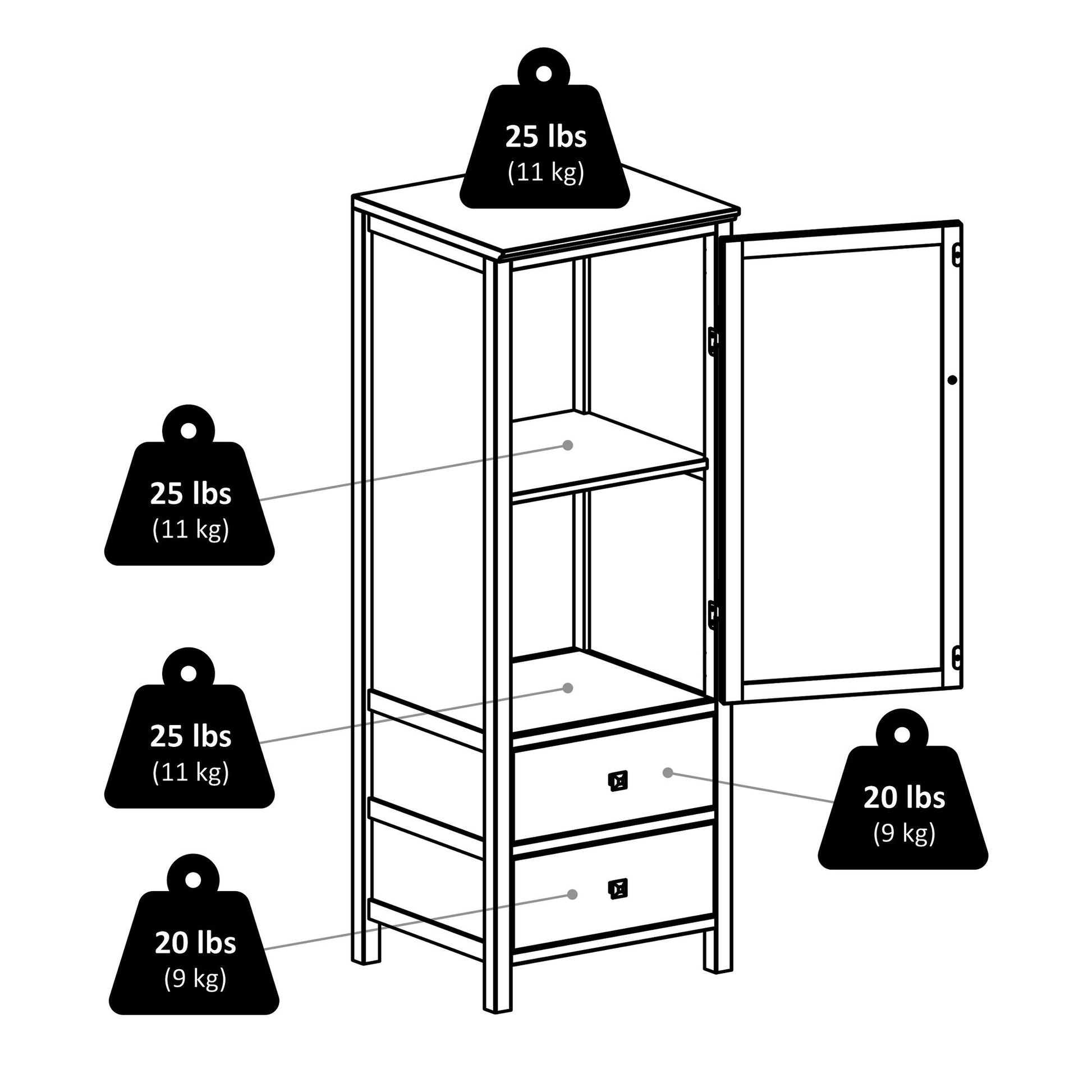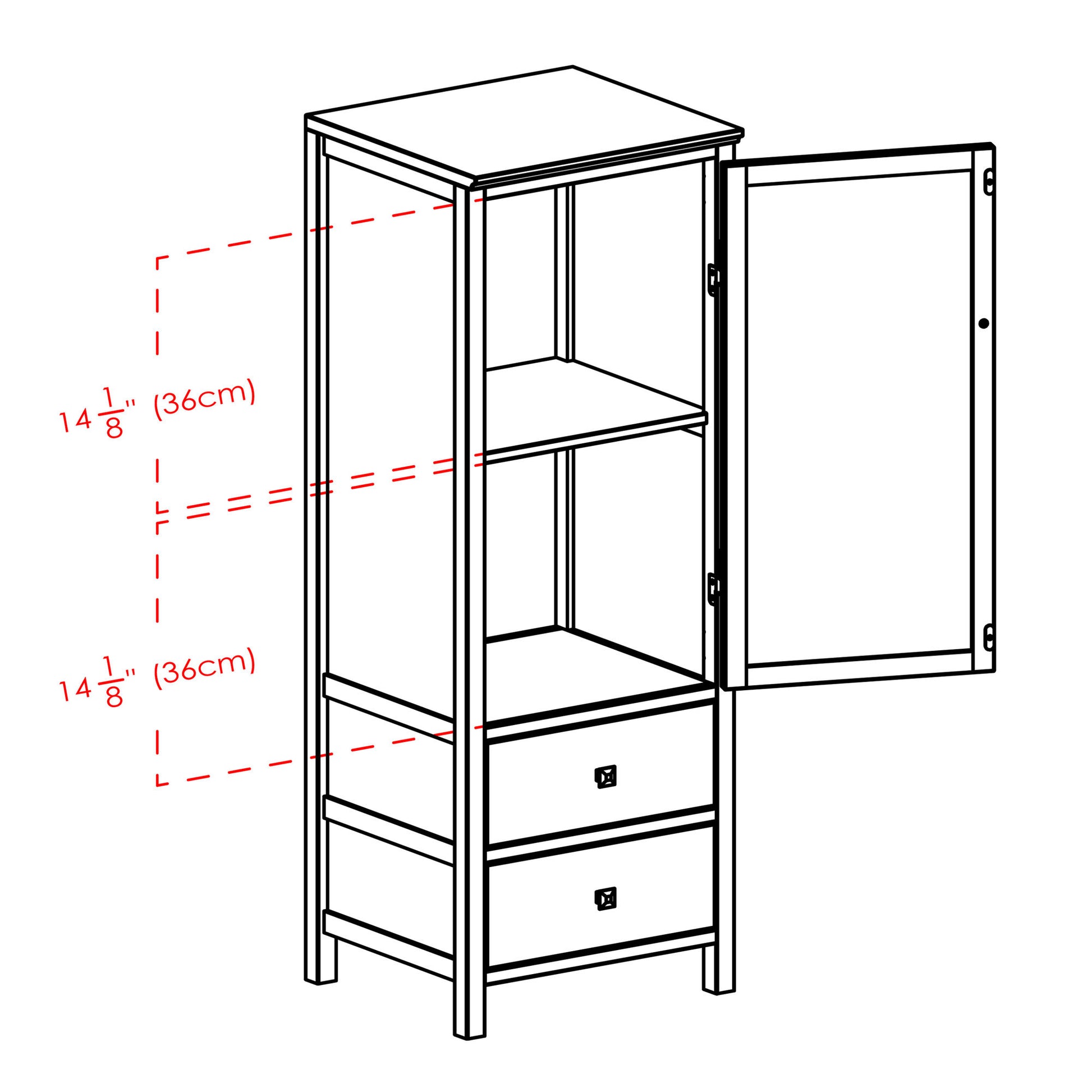 - Shelf dimensions: 14.9"W x 14"D (14.1"H clearance)