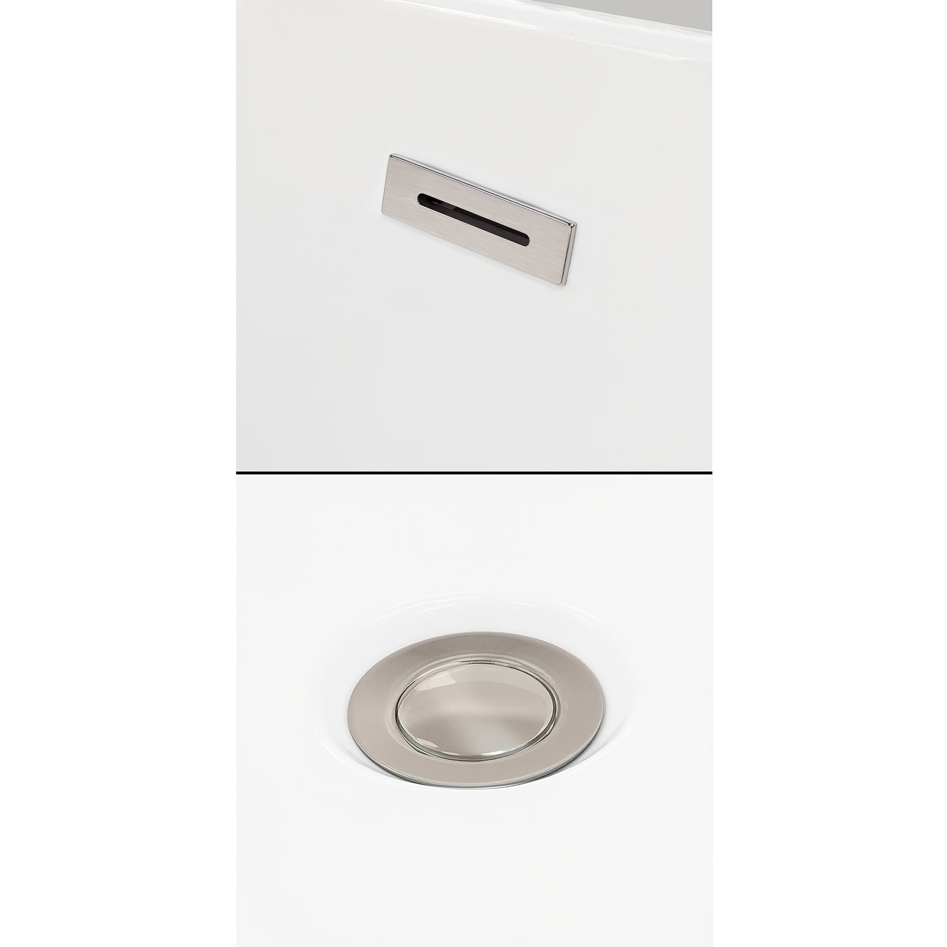 - Includes brushed nickel integrated overflow and drain